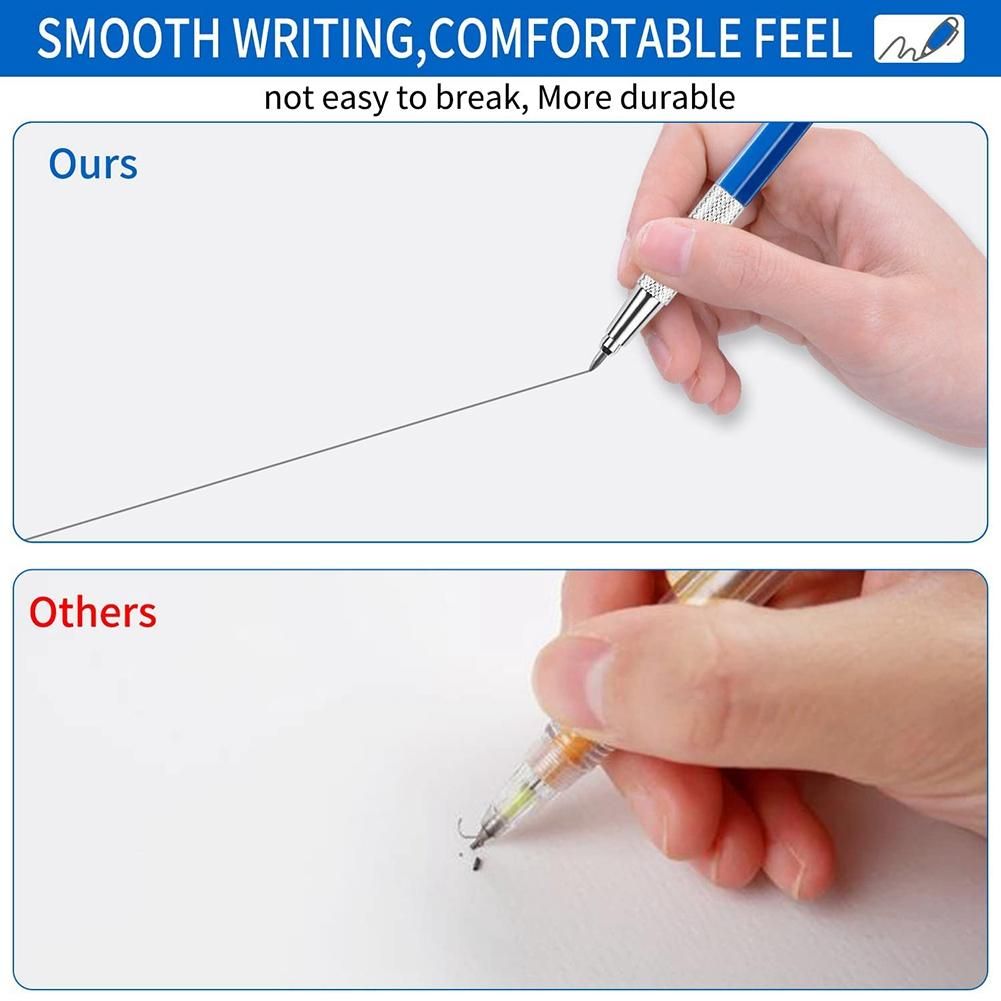 Silver streak mechanical pencil: unlike other colors, silver is more suitable for marking darker steel, our silver streak round refills are less erasable than soapstone pen. silver solid metal maker refills can be widely applied for oily, wet, rusty metals and so on, which is suitable for pipe fitter welder, fabrication, steel construction and even woodworking.