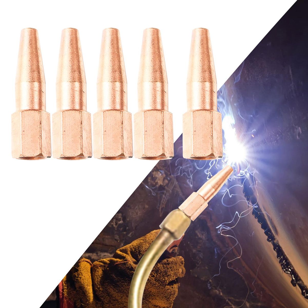 【Feature】5 piece welding nozzle (.5mm, 0.6mm, 0.7mm, 0.8mm, 0.9mm) for H01-2 or acetylene welding torch.