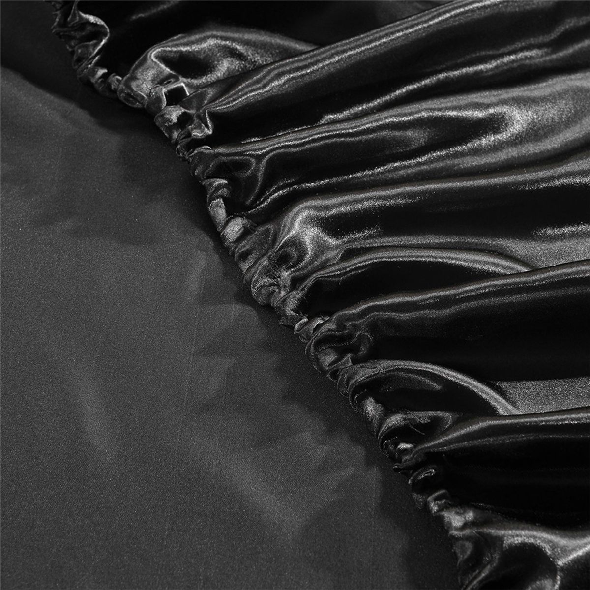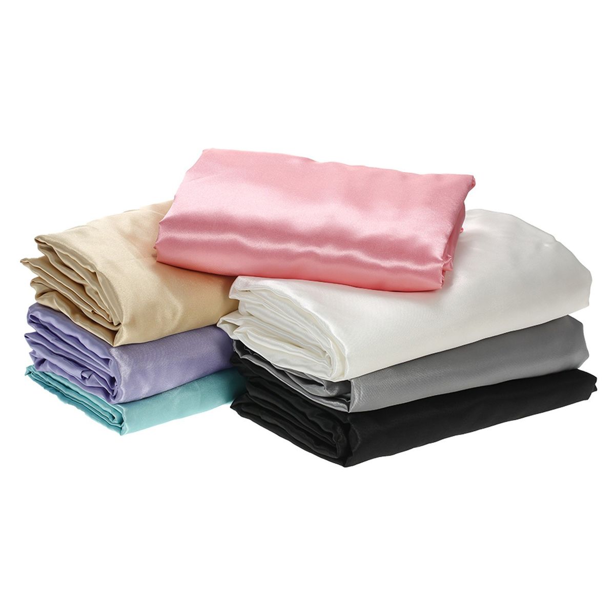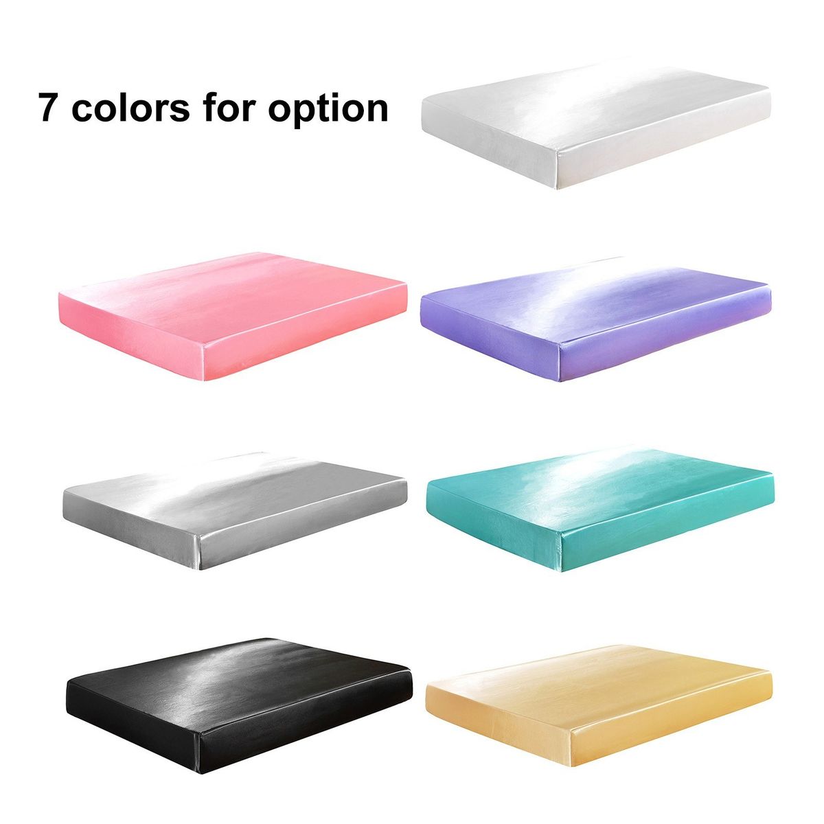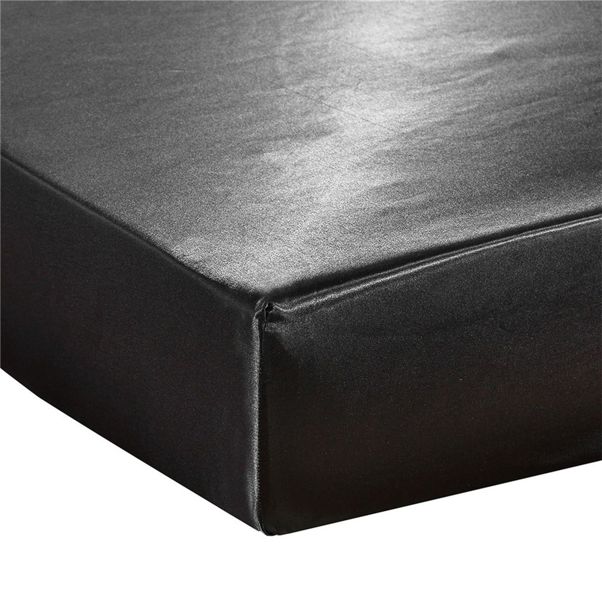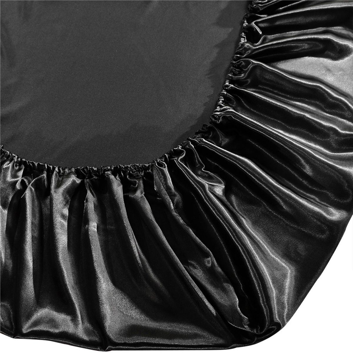 Solid color silk-like polyester fitted sheet.