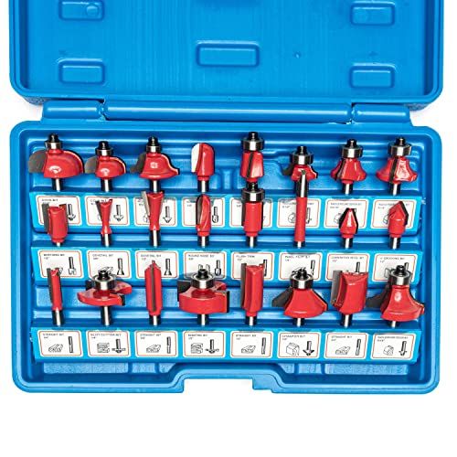 Details: WEN RT33 15-Amp Variable Speed Plunge Woodworking Router Kit with Carrying Case & Edge GuideRemember when you had versatility and power all in the palm of your Hand? Do you fany hamfers and v-grooves or are you partial towards rabbets and dados? We wont judge. Thatll just be between you and your router. Make intriate patterns in both the exterior and interior of your workpiees with the WEN 15-Amp variable speed plunge router. This versatile mahine features a variable speed 15-Amp motor, providing users speeds from 8, 000 to 23, 000 rotations per minute. The 1/2-inh ollet inludes an additional 1/4-inh adapter, allowing for ompatibility with a wide variety of bits. Our soft startup design prevents damage to your workpiee and lengthens the tools lifespan. The spring-loaded base features a lok-down knob to turn your plunge router into a fixed router. The intriate depth stop system features a 7-stop turret, a depth adjustment dial that advanes the depth stop 5/16 of an inh per quarter turn, and a fine-tune adjustment dial that advanes it 1/128 of an inh per quarter turn. The inluded guide fene lets users rout perfetly straight lines, helping to reate dadoes and grooves along the workpiee. This kit omes paked with aessories, inluding a hard-shelled blow mold arrying ase, a 1-1/2 inh dust Colletion dut, a bit-hanging wrenh, a Straight-Edge guide fene, a fene sale, a entering pin for utting irles, a profile guide for routing edges of urvy workpiees, and a template guide for reating more omplex shapes. And, beause its a WEN produt. a nationwide network of skilled servie tehniians and a friendly ustomer help line. Remember when you stepped your arpentry up a noth? Remember WEN.HILTEX 10108 Tungsten Carbide Router Bit Set, Woodworking Tools and Aessories, 1/4-Inh Shank, 24-Piee SetEdge, trim, and ut through any wood material with the HILTEX Tungsten Carbide Router Bit Set. This routing set offers 24 strong, universal router bits for woodworking. Eah bit features a 1/4-inh shank that lets it fit all models of routers, and some bits have ball-bearing rollers for an even smoother user experiene. Let router set make all your work and DIY wood projets more effiient and professional.Eah bit in set is tipped with preisely mahined, heat-resistant YG8 tungsten arbide blades for lean and aurate uts, and the hardened alloy steel onstrution and -oated finish ensure durability and longevity. The set inludes a groove-labeled wooden ase and 24 bits with and without ball bearings. It omes with the following bits without ball bearings: a 1/2-inh mortising bit; a 1/2-inh ombination bevel bit; 3/8-inh and 1/2-inh dovetail bits; a 1/2-inh -degree V groove bit; 3/8-inh and 1/2-inh round nose bits; a 1/4-inh panel pilot bit; and 1/4-inh, 3/8-inh, 1/2-inh, and 3/4-inh straight bits. It also omes with the following bits with ball bearings: a 3/8-inh trimming bit; a 1/2-inh flush trim bit; 1/8-inh, 3/16-inh, 1/4-inh, and 3/8-inh radius round over bits; 1/4-inh and 3/8-inh ove bits; a 1/2-inh 45-degree hamfer bit; a 5/32-inh Roman ogee bit; a 1/4-inh slot utter bit; and a 1/2-inh rebating bit.Whether youre a beginner woodworker arving your first sulpture or a highly skilled arpenter working on drywall, tungsten arbide router bits will help you reate smooth and finished wood designs that will look and feel fantasti. HILTEX has your bak with our durable, dependable, and strong tools.