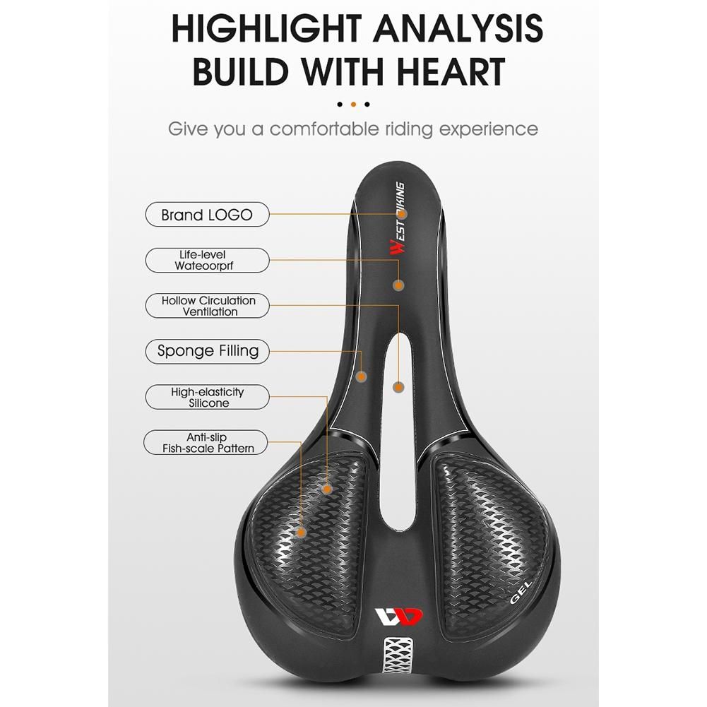 Detailed Information About The Product:[Quality & Workmanship] WEST BIKING upgraded wide bike seat is made of high density thickened memory foam and wear-resistant PU leather which is soft and waterproof.