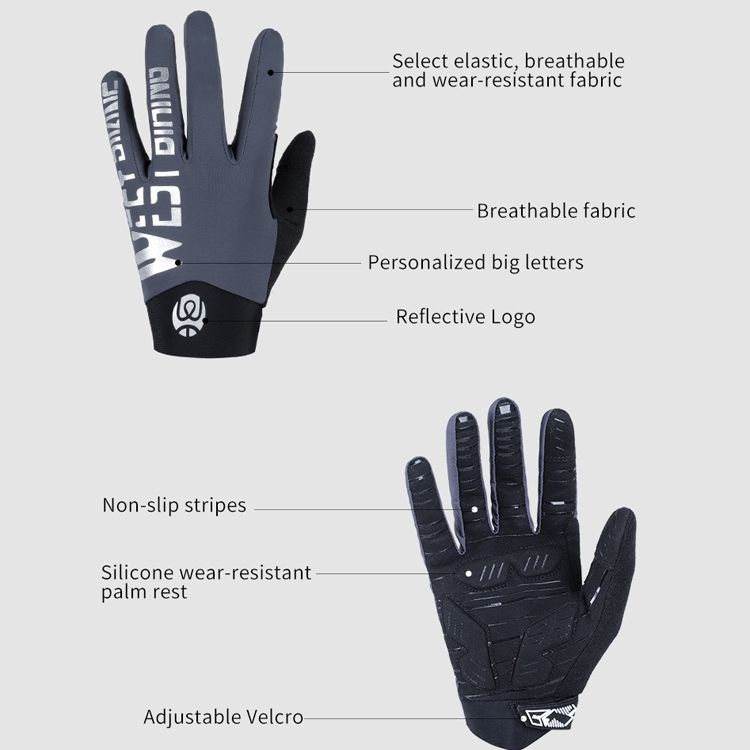WEST BIKING Long Shock Absorption Cycling Gloves, Size: XL
