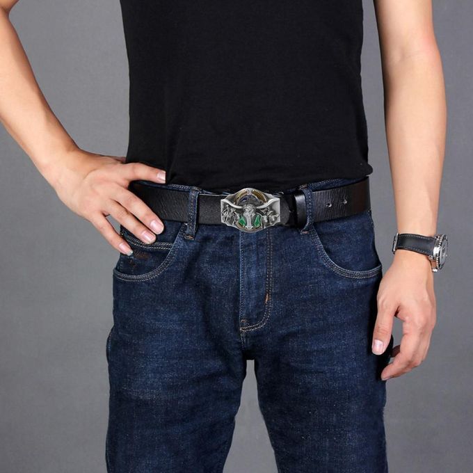 Material: Leather belt, Zinc alloy belt buckle, it is soft and comfortable to wear.