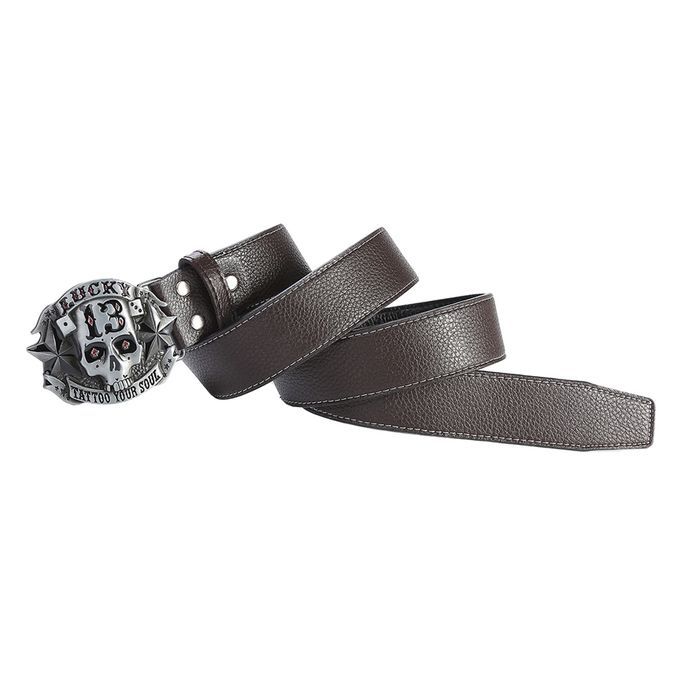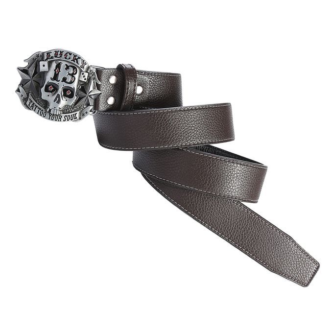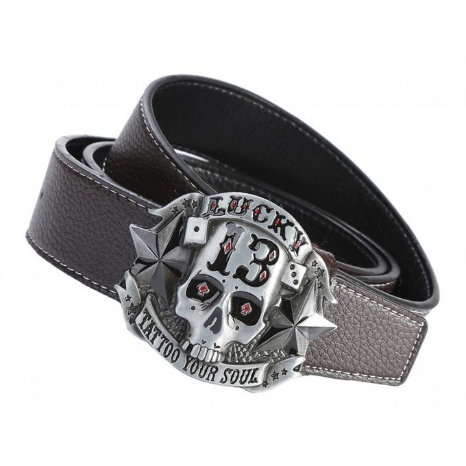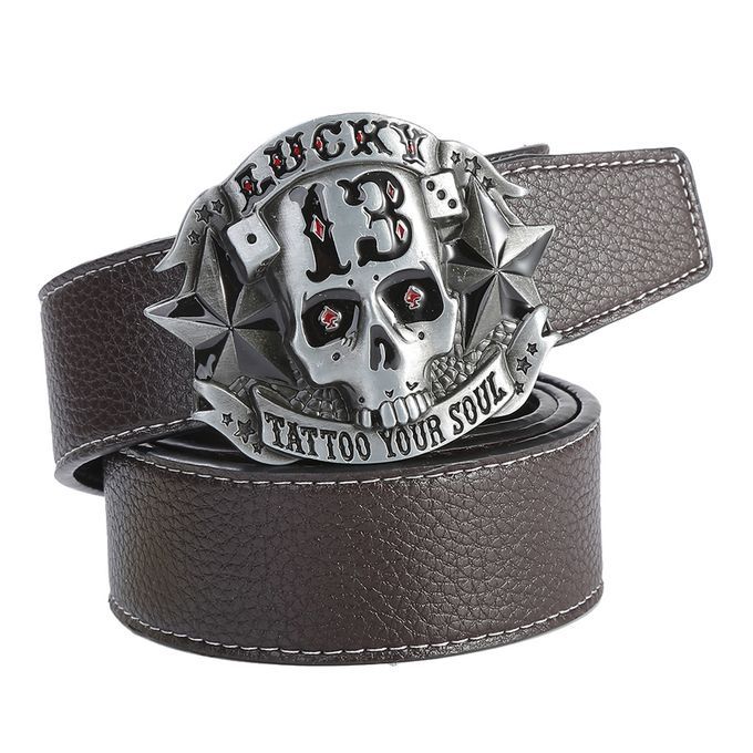 Buy Western Cowboy Style Skull Head Buckle Leather Belt Jeans Dark Coffee in Nigeria