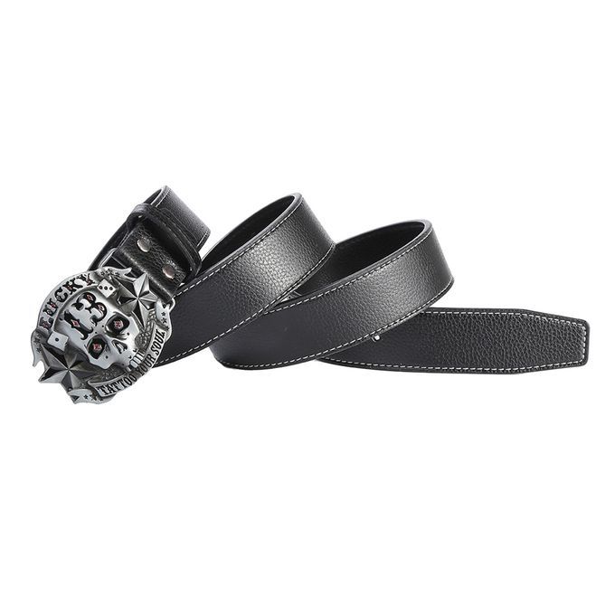 3.8cm/1.5 inch wide leather belt for men, vintage style leather belt with skull head buckle