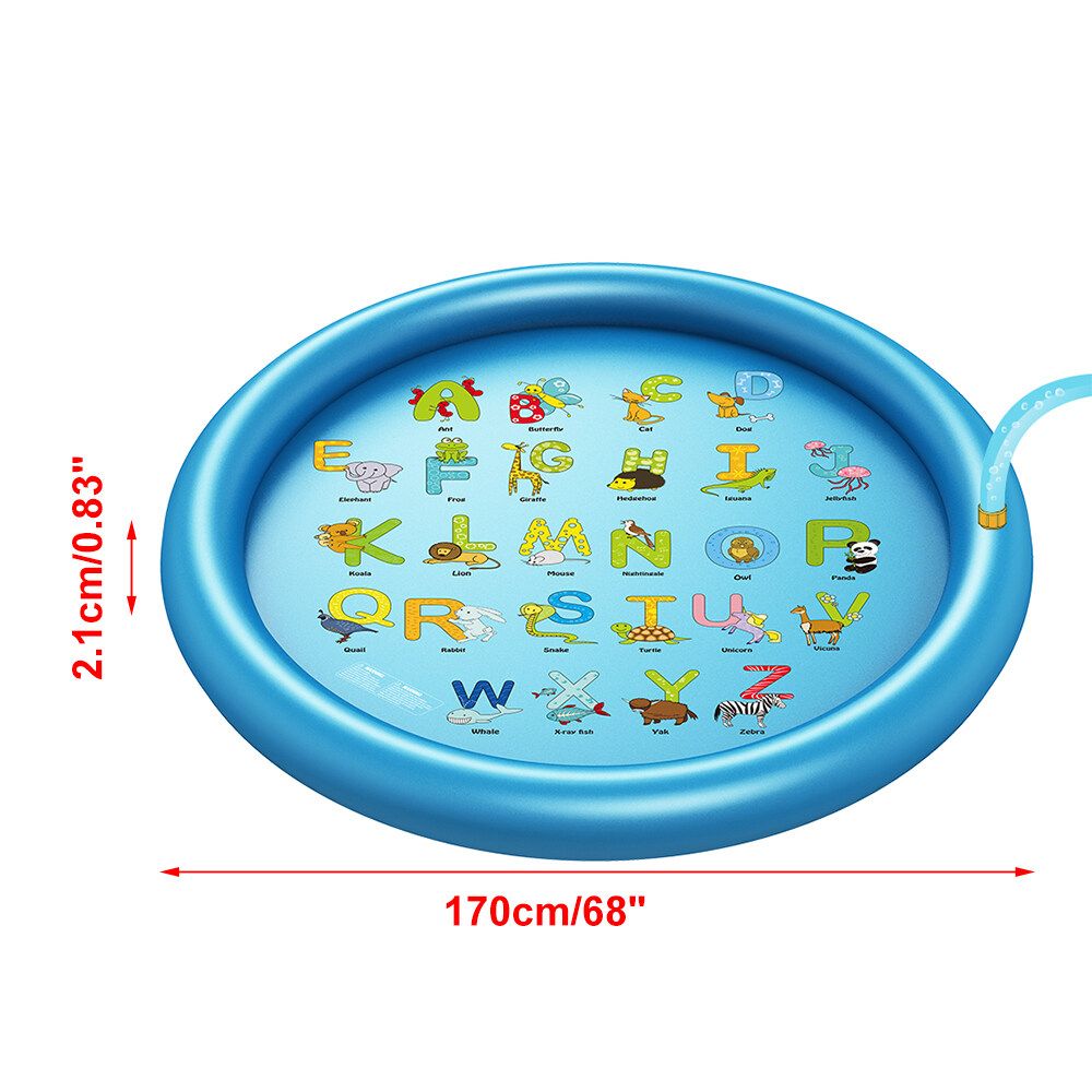 Specifications: Made of high quality PVC material, odorless, safe, eco-friendly and waterproof. Inflatable play mat, easy to store and use. Cartoon sea animal pattern design, looks so lovely and funny, and attracts kid's attention. Perfect for relaxation, party or celebration at lawn, garden, swimming pool or beach. Item Name: Sprinkler Play Mat Material: PVC Applicable People: Children Occasions: Beach, Lawn, Swimming Pool, etc. Features: Cartoon Sea Animal Pattern, Inflatable, Eco-friendly After Inflation Diameter: 170cm/68" (Approx.) After Inflation Height: 2.1cm/0.83" (Approx.) Notes: Due to the light and screen setting difference, the item's may be slightly different from the pictures. Please allow slight dimension difference due to different manual measurement. Package Includes: 1 x Sprinkler Play Mat