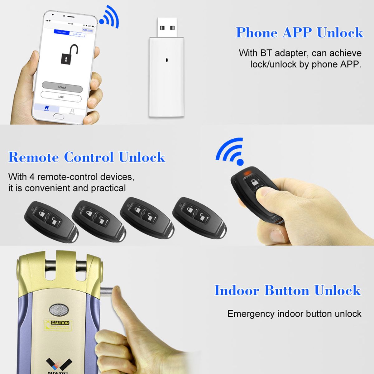 *Three unlock modes optional: Phone APP unlock, Remote control unlock, Indoor emergency button unlock.