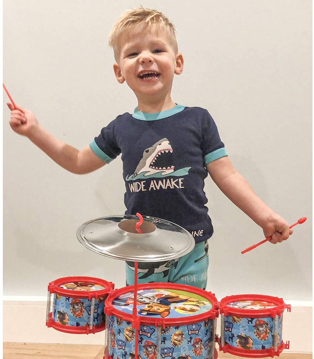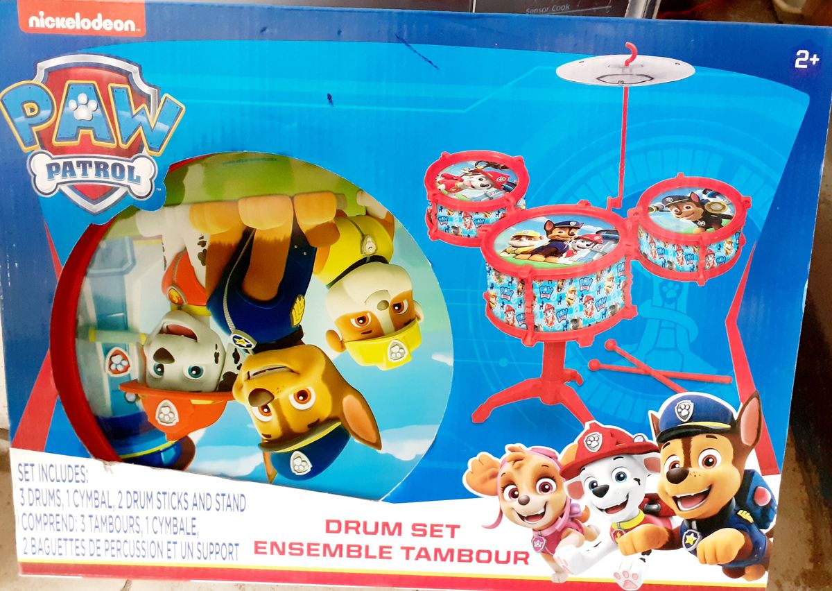 Paw Patrol set includes: 3 drums, 1 cymbal, 2 drum sticks For ages 2 and up helps a child expresses his/her inert ability as well exercising the body organs of such child. It also helps a child learn and develop his/her music instrument playing skill at his/her own pace