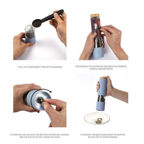 [Easy to operate] This pepper grinder is powered by 6 AAA batteries (batteries not included). It can be easily operated with one hand and is very easy to use, just press the top button to season the dishes.
