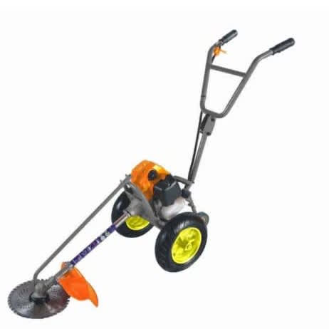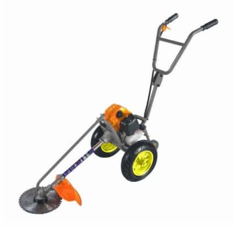 Wheel Brushcutter Grass Trimmer 1Wheel Brushcutter is a Brushcutter type that uses 2 wheel and pushed around to cut the grass.White it's a normal Brushcutter that uses fuel and oil, its more easier to push around the lawn,The Wheel Brushcutter comes with an Autocut and Blade
