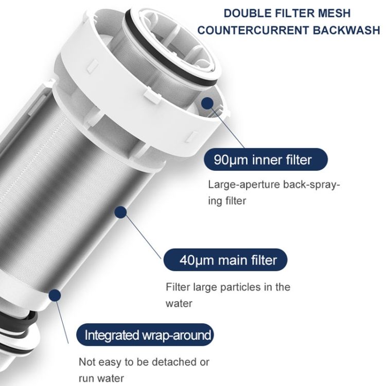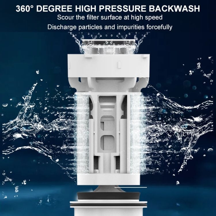 5. Filter built-in pulse system to achieve high-speed spraying, water flow more concentrated, 360 degrees of comprehensive decontamination, full-speed flushing surface particles impurities and strong discharge