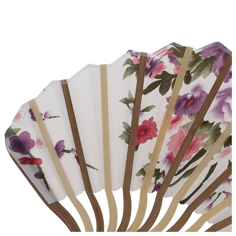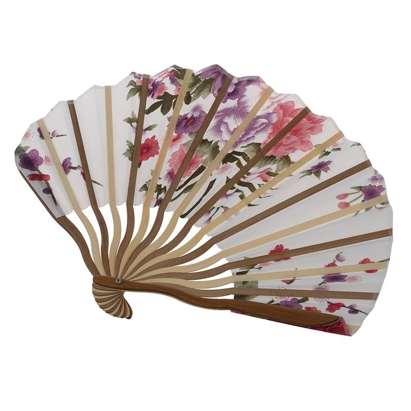Buy White Beige Flower Fan Folding Bamboo Seashell Hand Ribs Printed Shape in Nigeria