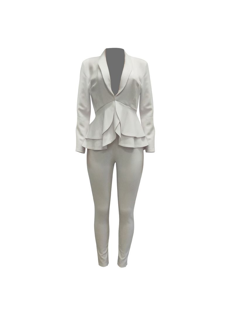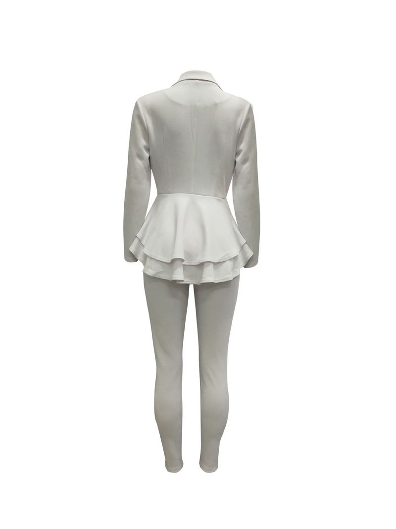 1X White Blazer 2 Piece Set Women Winter Work Wear Full Sleeve Ruffles Blazers Pencil Pants Suit Two Piece Set Office Lady Outfits