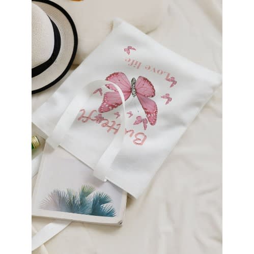 Buy White Butterfly & Letter Graphic Shopper Bag in Nigeria