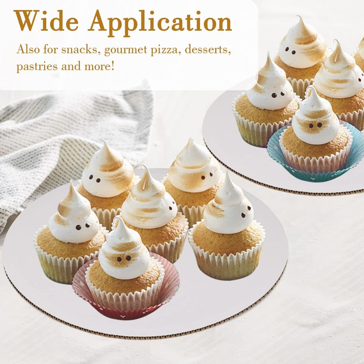 Our cake board set, the perfect addition to your baking essentials! this set includes 20 round cake boards, ensuring you have enough bases for multiple cakes. crafted from light corrugated food-grade material, these boards are not only strong but also safe for use with food.