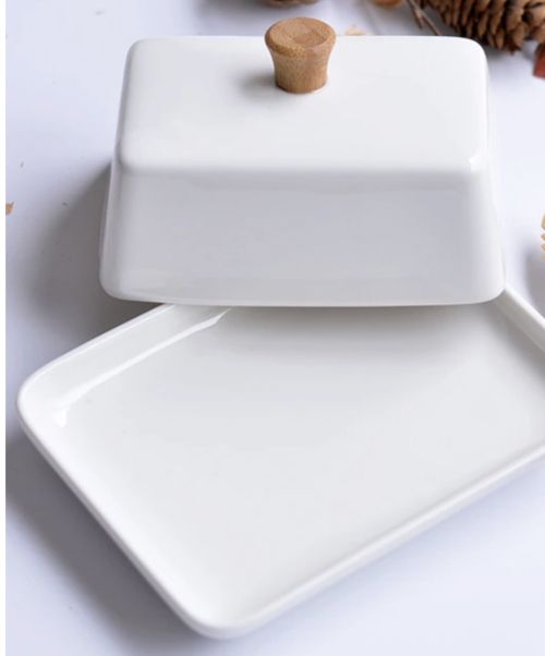 White Ceramic Rectangular Butter Dish Tableware Porcelain Butter Keeper, Wide Perfect For East/West Butter-butter Dish-tableware Dishrectangular Dish
