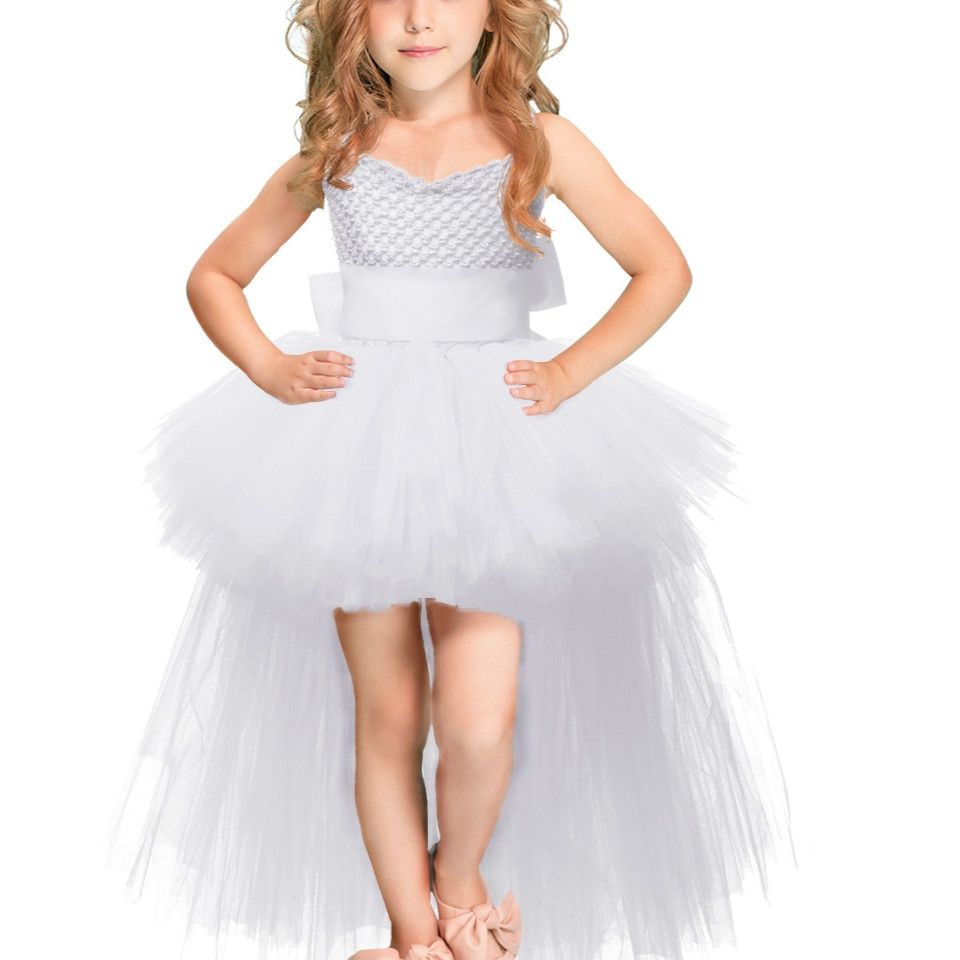 White Girls Lace Sling Dress Mesh Tutu Party Dress, KId Size:5-6 ageᆪᄄ110-120cmᆪᄅ