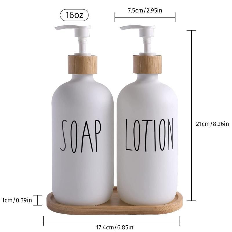 - The soap dispenser for bathroom is made of glass, matched with a wooden tray, will not rust, can be refilled, and are durable.