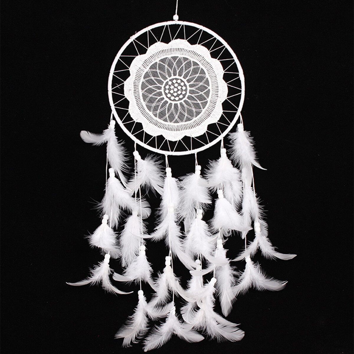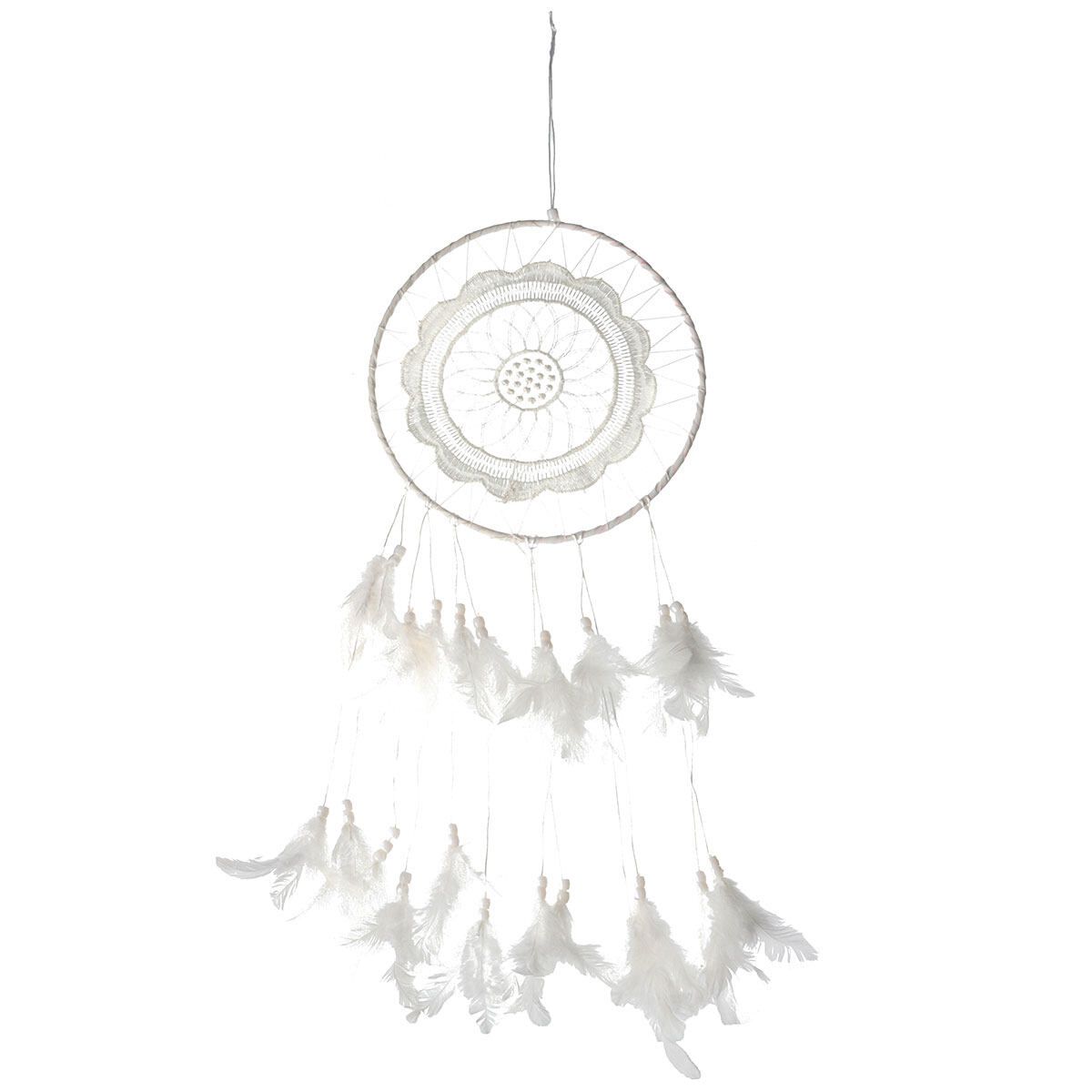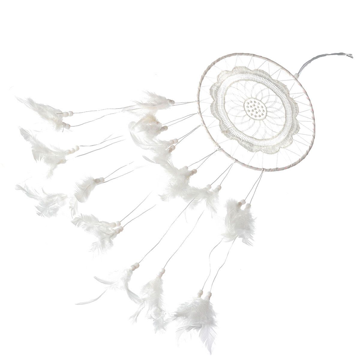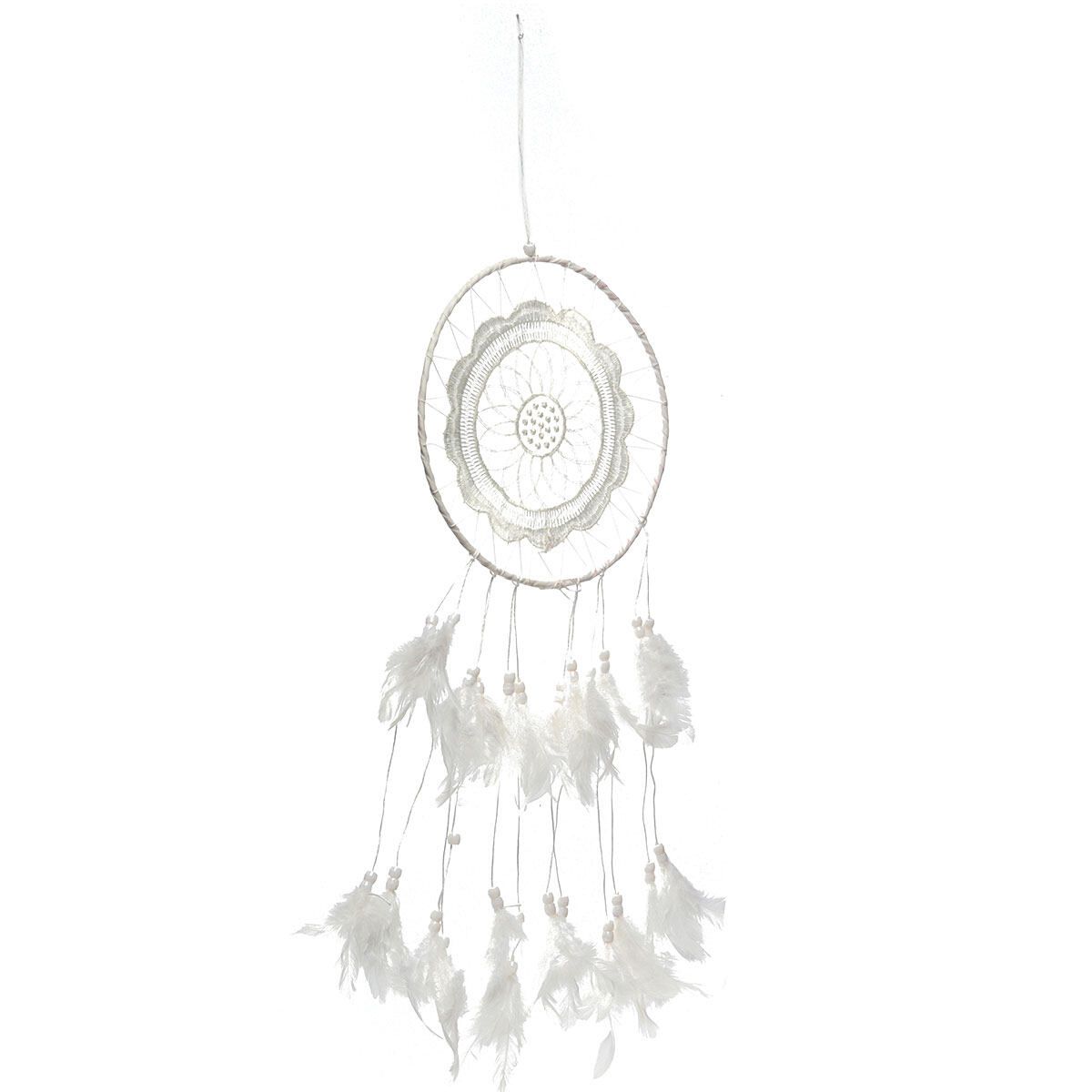 Material: Hoop + ABS Beads + Feather + Polyester Thread + Lace