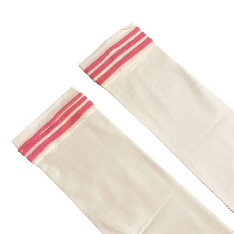 1X Kawaii Striped Long Socks Women Over Knee Thigh High Socks White Pink Over Knee Stockings For Ladies Anime Girl Warm Knee Socks