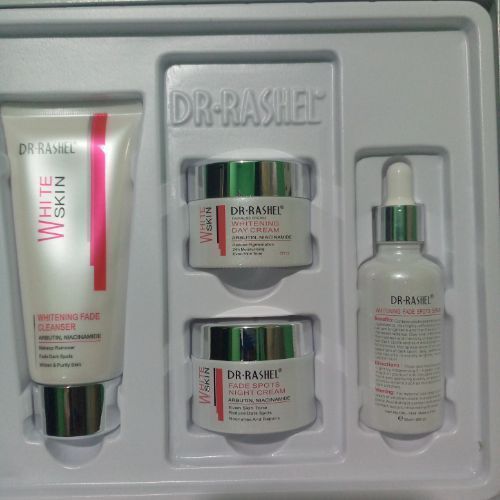 DR· RASHEL White Skin Fade Spots Serum 50ml Contains alpha arbutin and niacinamide ingredients which highly helps brighten and clarify skin for increased radiance. Over time, this serum diminishes the number and intensity of even deep-set dark spots and skin discolorations. Minimizes the appearance of a broad spectrum of dark spots, and daily continuous use results in visibly brighter, more radiant and skin - complexion.