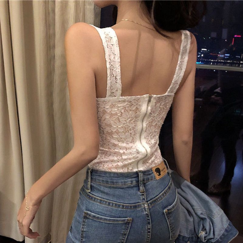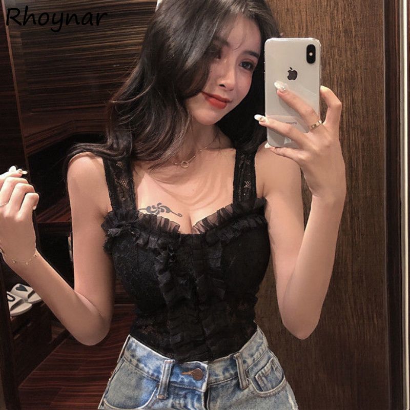 1X Camisole Women Lace New Elegant Solid Design Vintage Ladies Simple Soft Daily Leisure All-match Chic Fit Crop Tops Summer Sweet