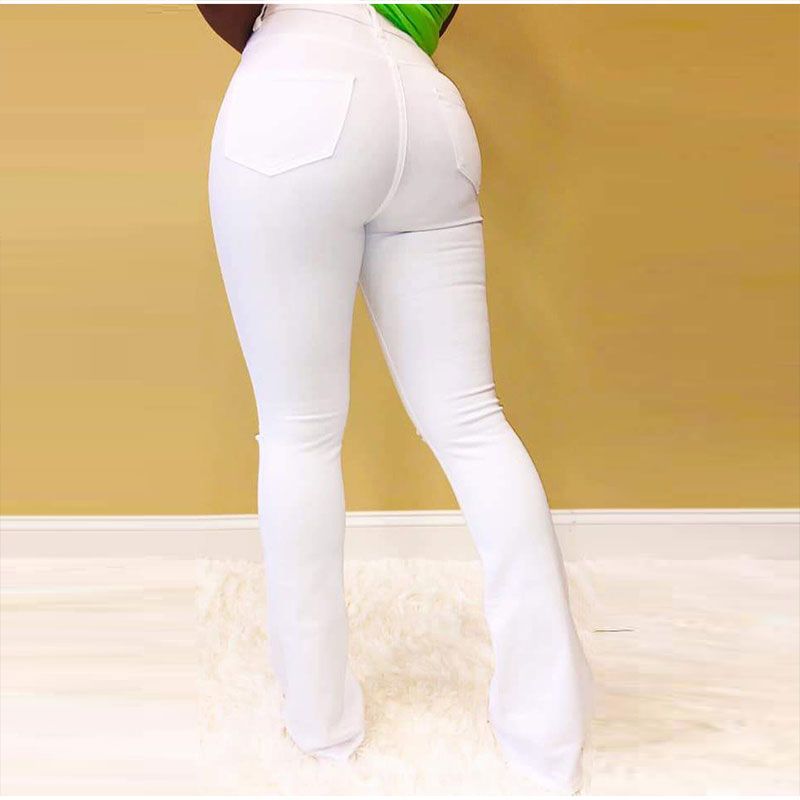 1X Plus Size High Waist Stretchy Skinny White Bell Bottoms Jeans 4XL Distressed Bodycon Pencil Denim Pants Lady Indie Trousers Jean