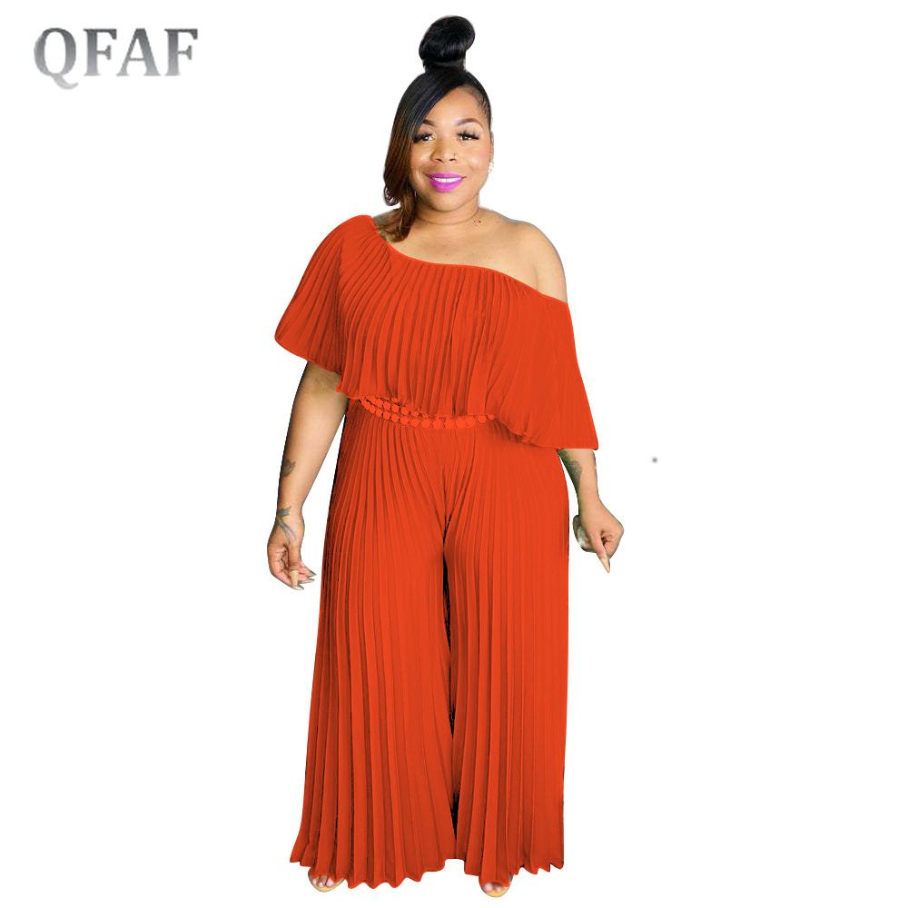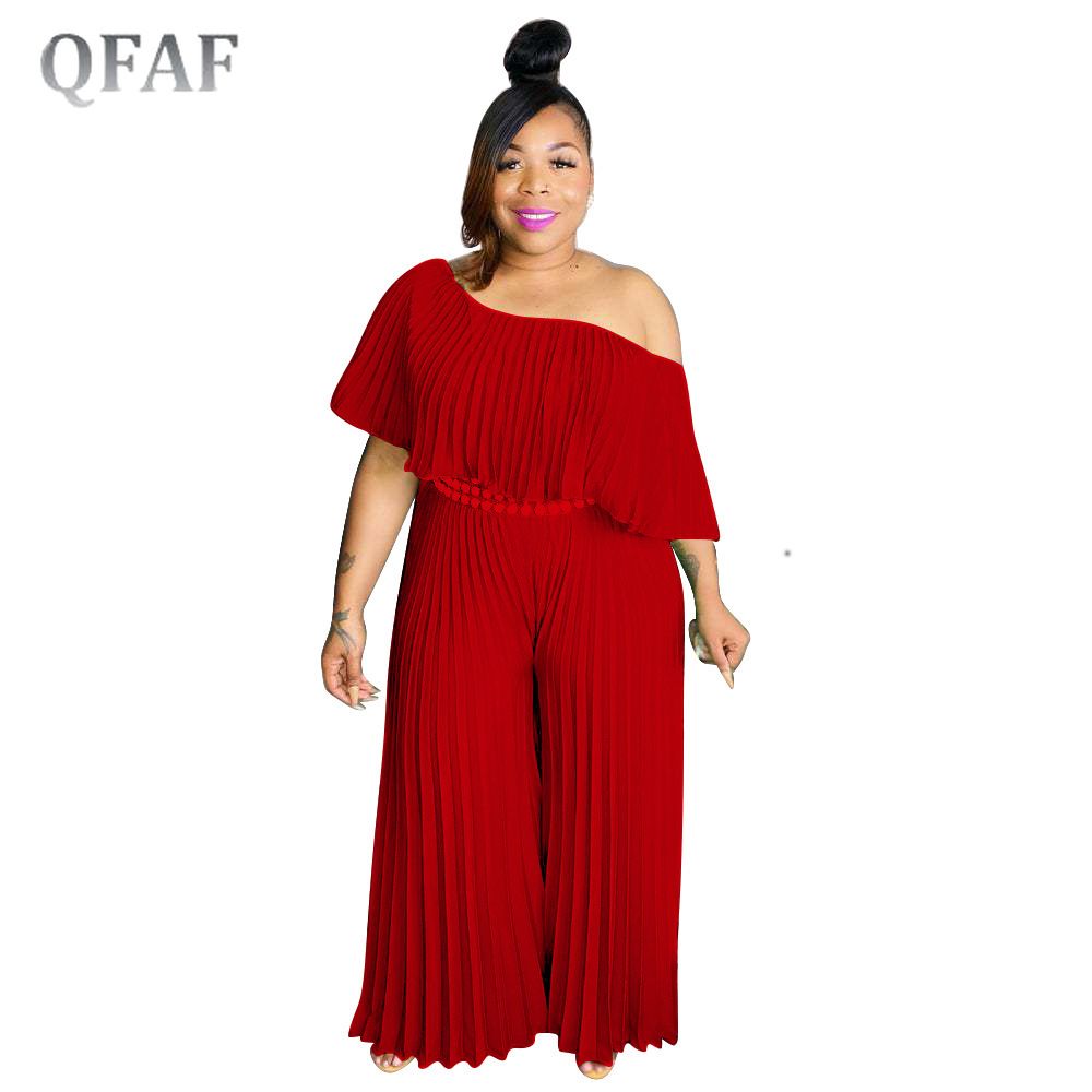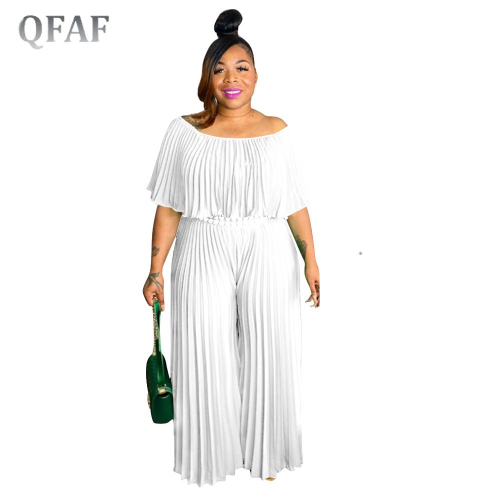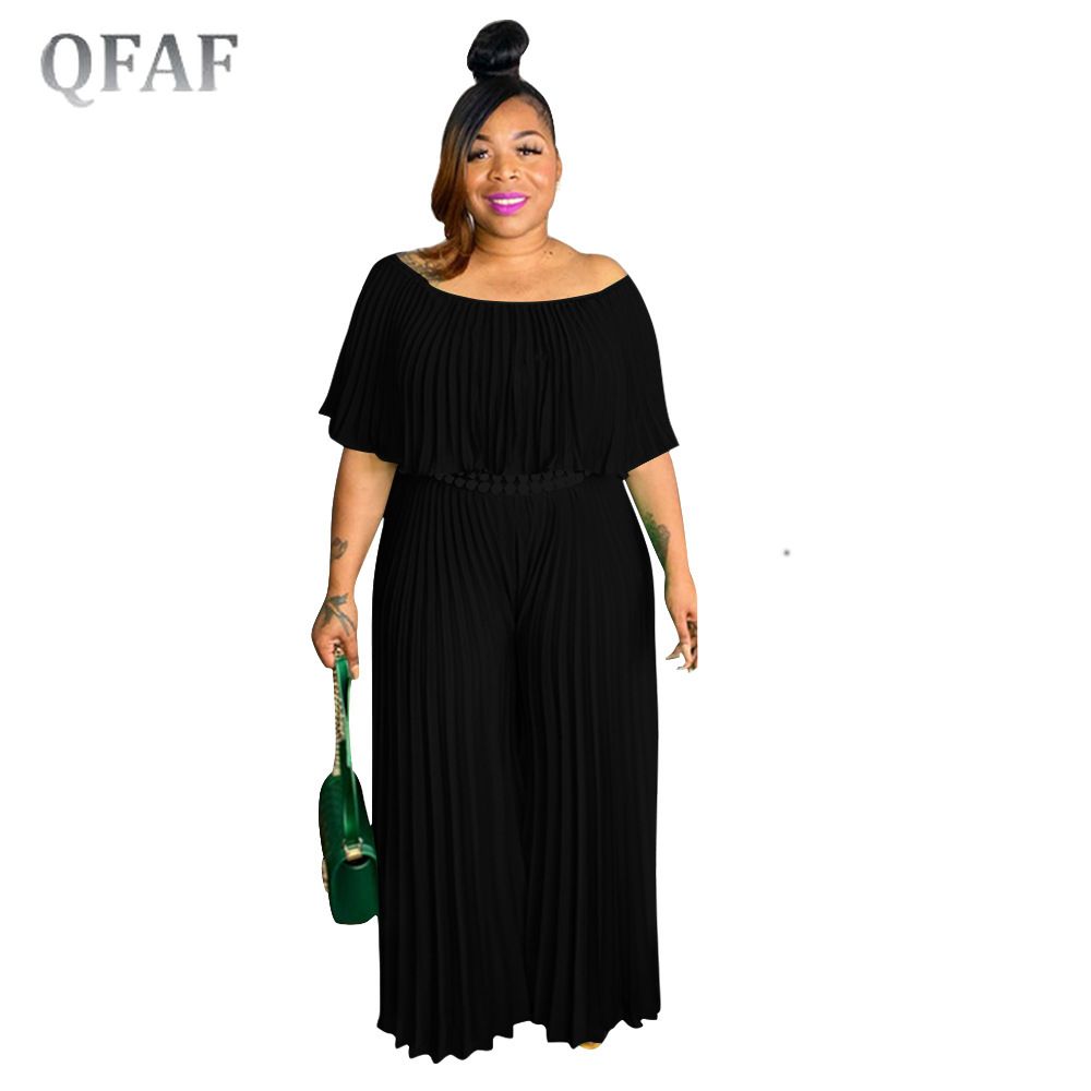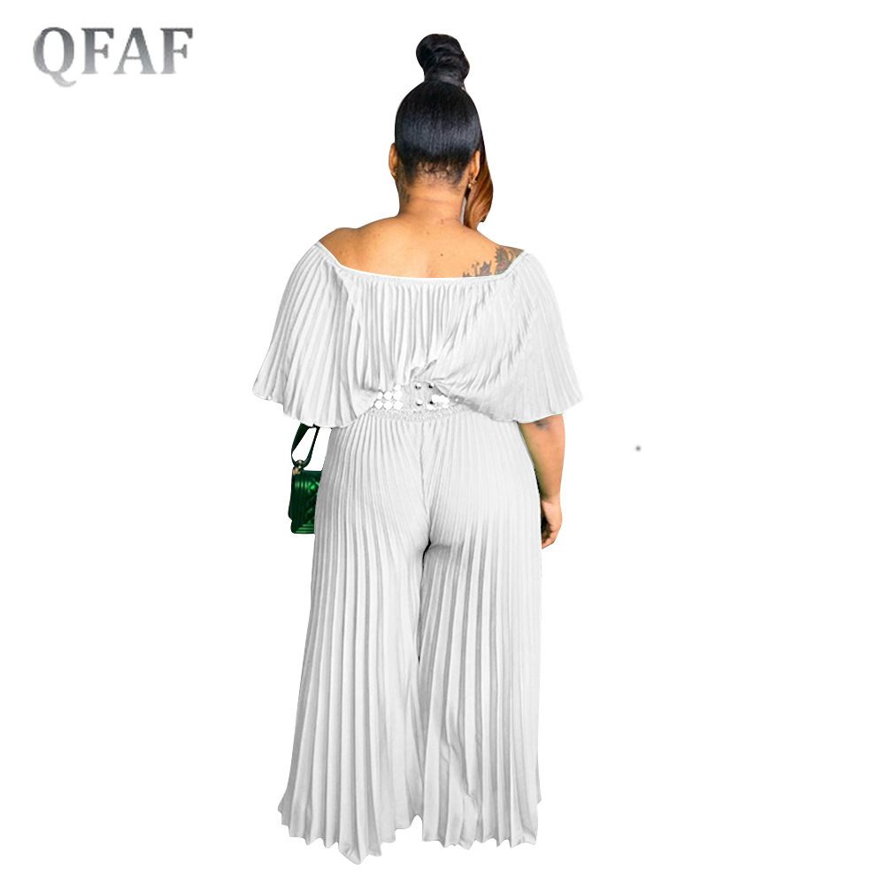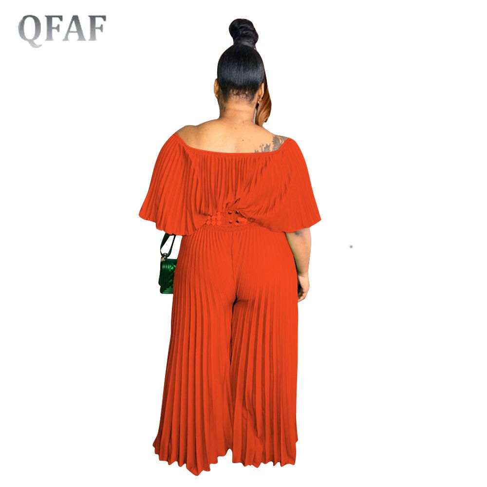 1X QFAF Plus Size Elegant Women Off Shoulder erfly Sleeve High Waist Pleated Jumpsuit 2022 Summer Wide Leg Straight Overalls