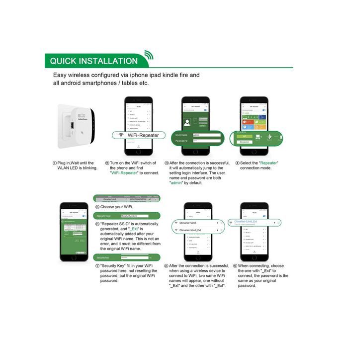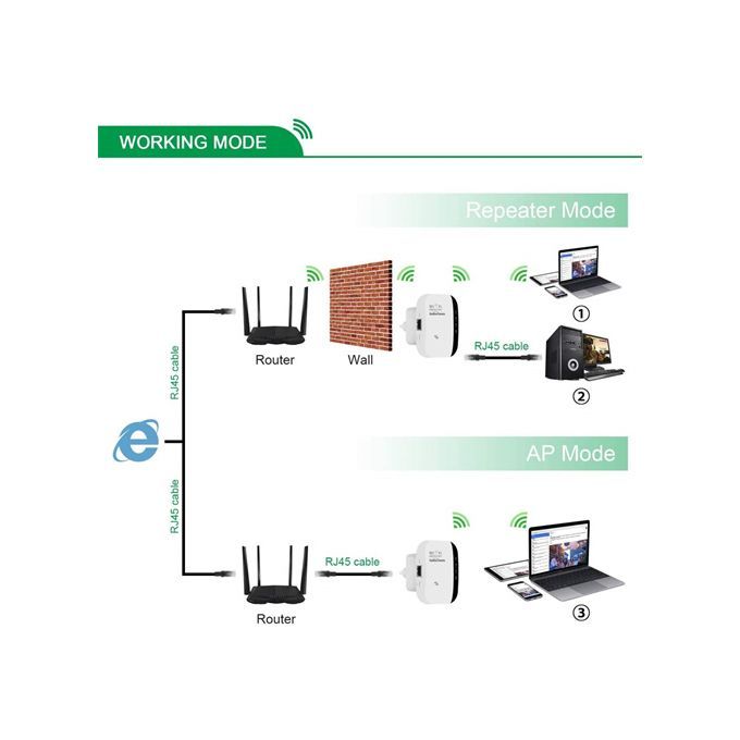 Improve wireless coverage in all WLAN networks.Access to the Internet for computers located on the edge or outside of the range of your access point.Complies with IEEE 802.11n, IEEE 802.11g, IEEE 802.11b standards .Provides up to 300Mbps transmission rates.Support 2.4 GHz WLAN networks.Maximum WLAN security with WPA2, WPA and WEP (128/64).Software wizard for simple setup.2dBi antennas integratedSupport Wireless Repeater Mode and Standard AP Mode.Provides one 10/100Mbps Auto-Negotiation Ethernet LAN ports.correct the language and the stablility of signalThe 2 version can supportChinese,English