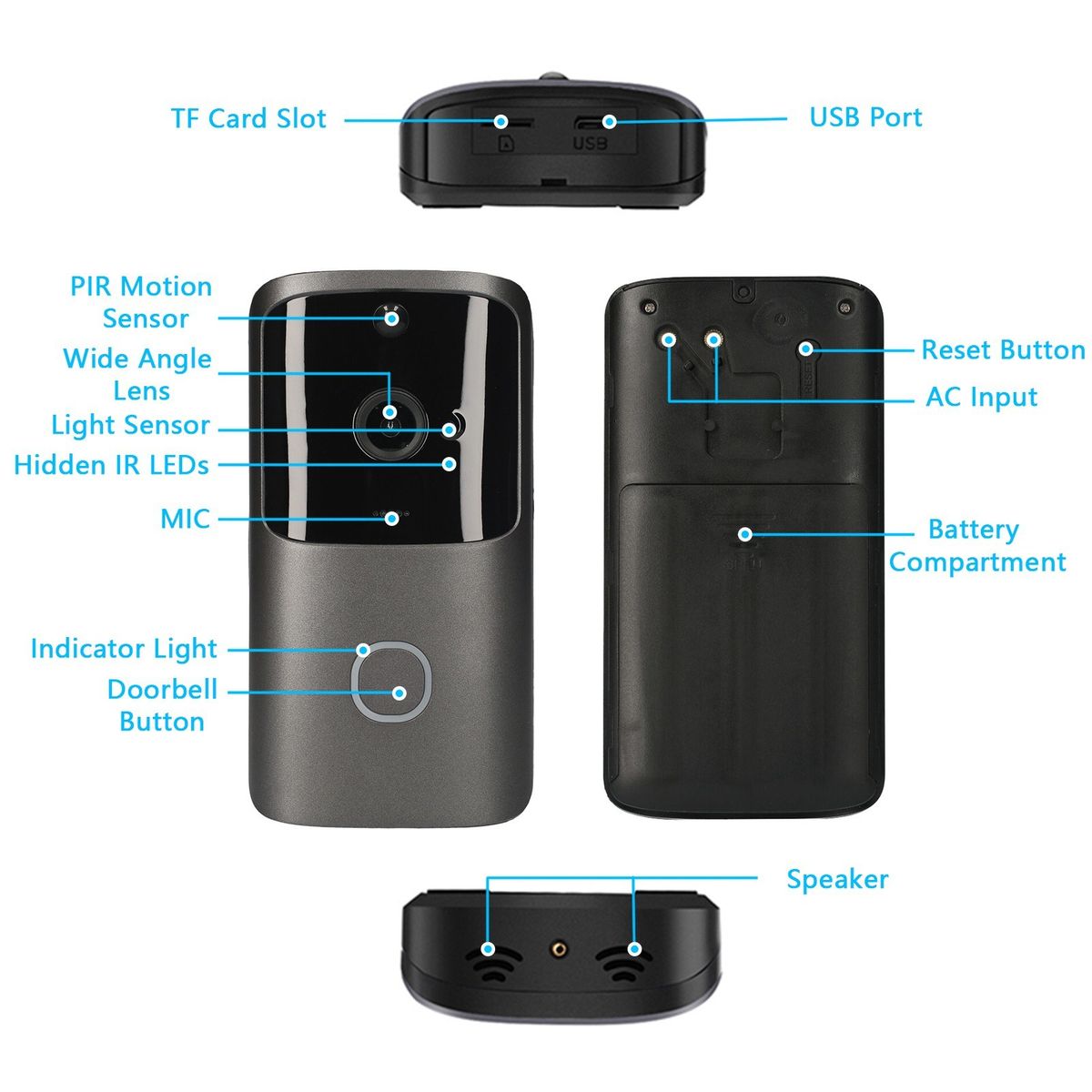 [720P Video amp; 166 deg; Wide Angle] -- 1280*720 resolution with 166 degree viewing angle ensures the clear and stable videos and images. 3 wake-up methods: press the doorbell button/ PIR detection/ mobile phone APP.