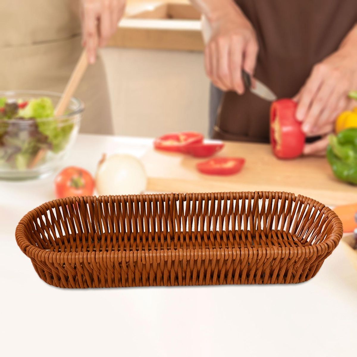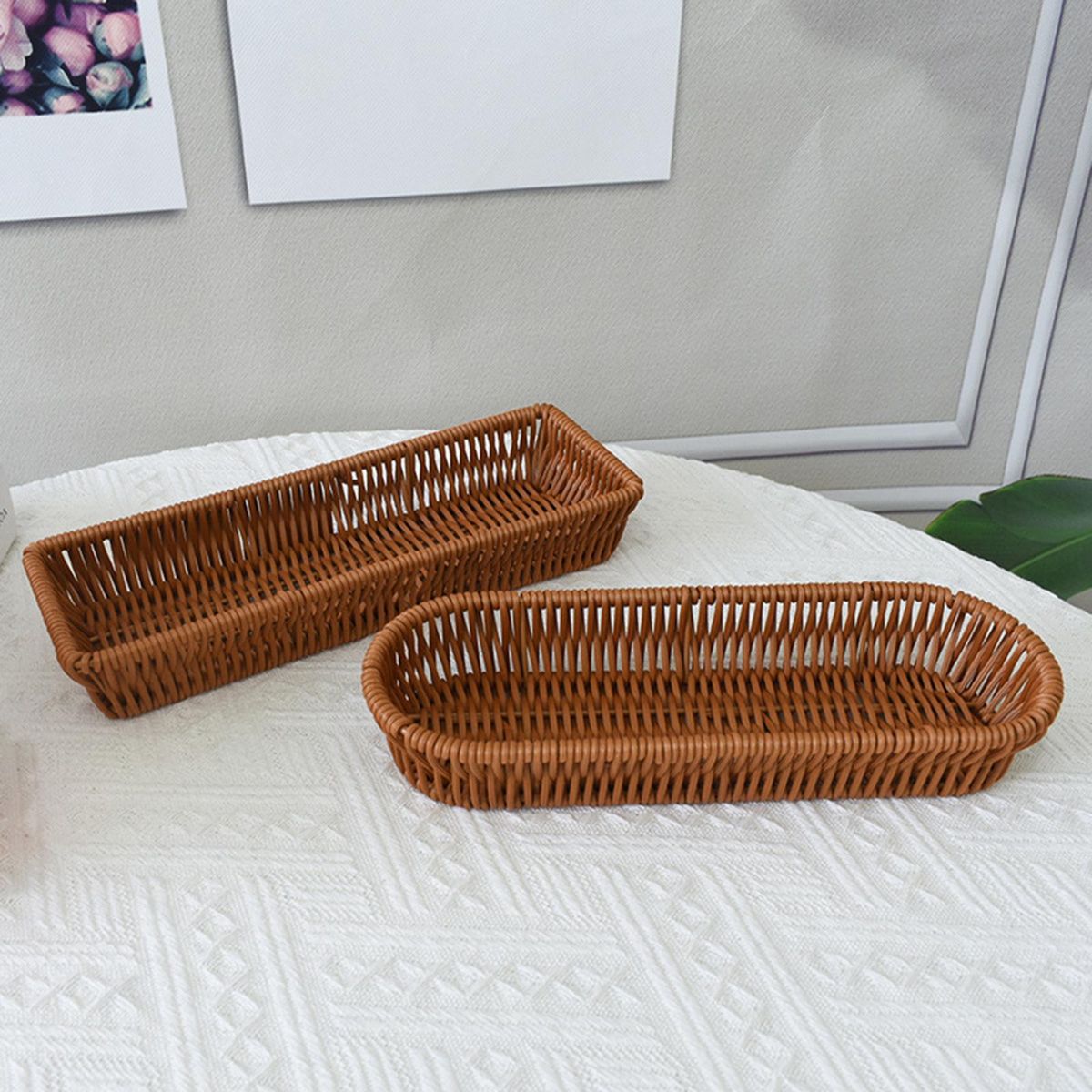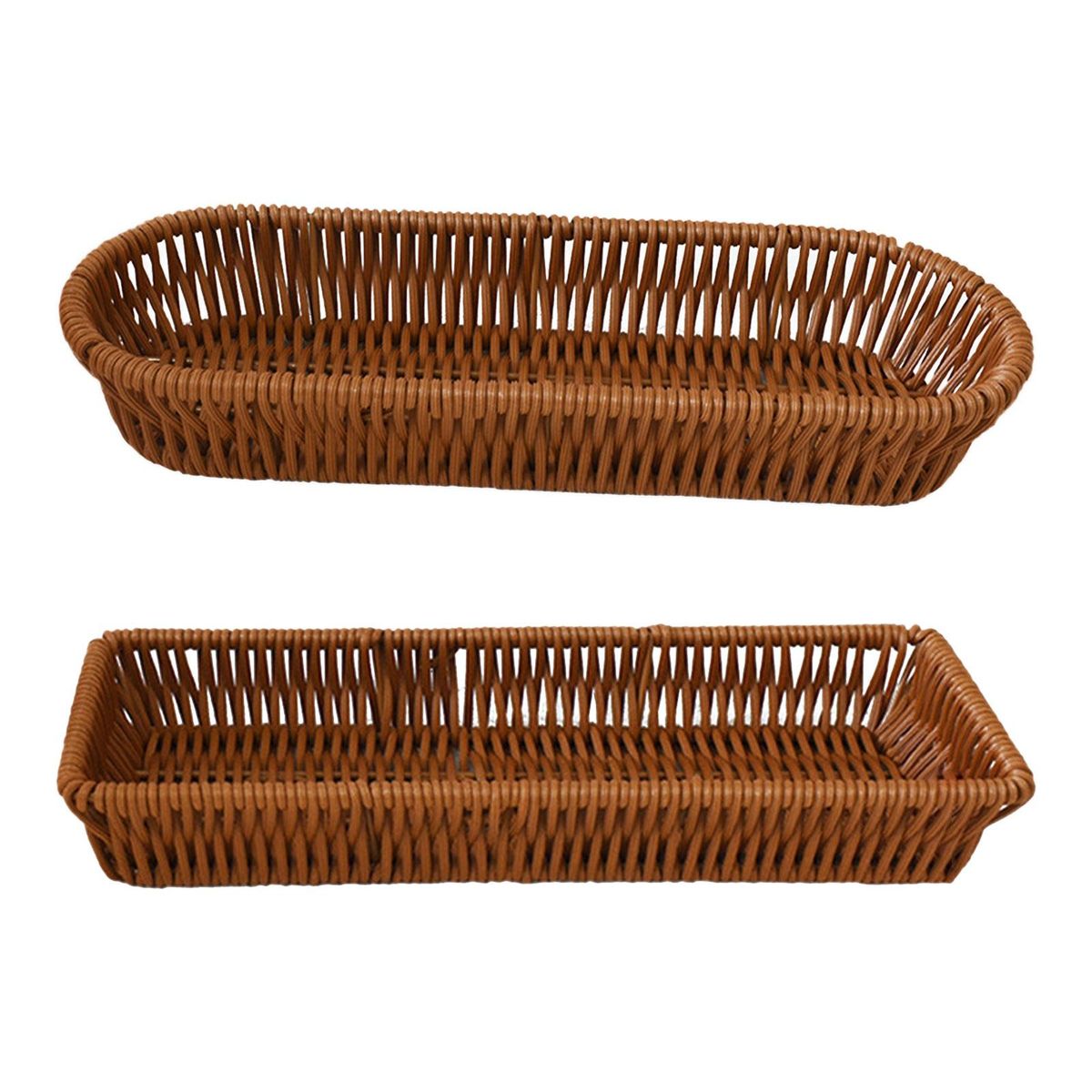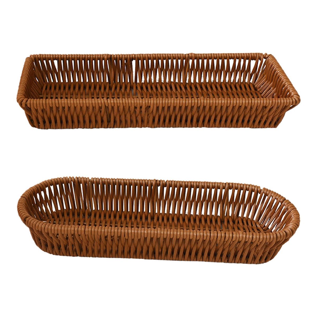 Woven Basket;Wicker Cutlery Basket Rectangular Woven Baskets;Handmade Woven Fruit Baskets for kitchen;Wicker Woven Bread Basket Fruit Baskets Food;Imitation Rattan Bread Serving Basket Storage;Woven Forks Spoons Storage Organizer Box