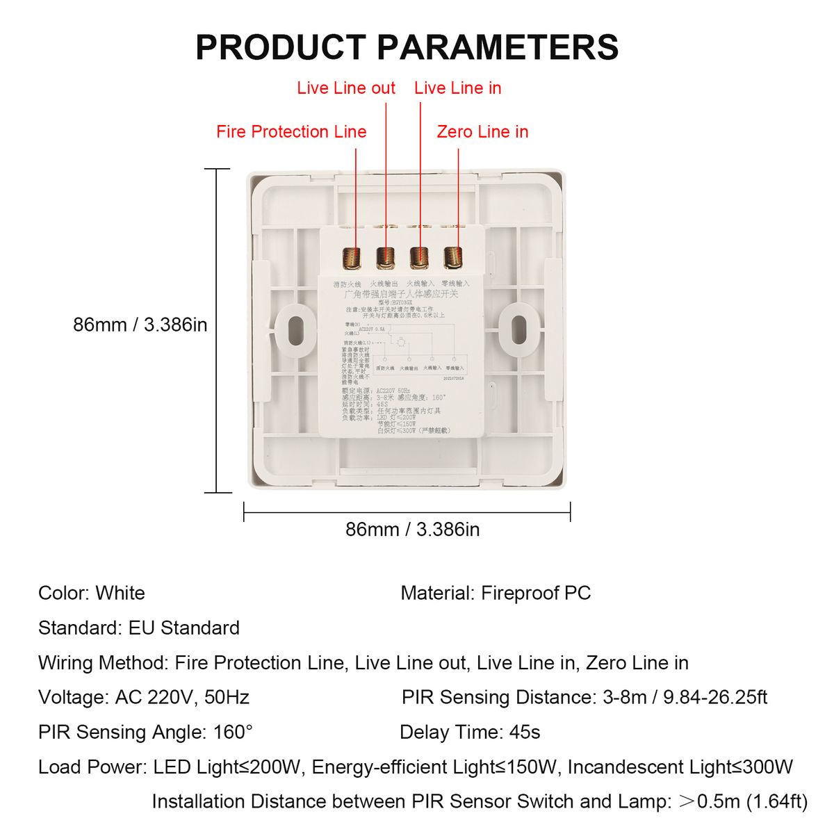 Connect the switch to LED light ( le;200W), energy-efficient light ( le;150W) or incandescent light ( le;300W).