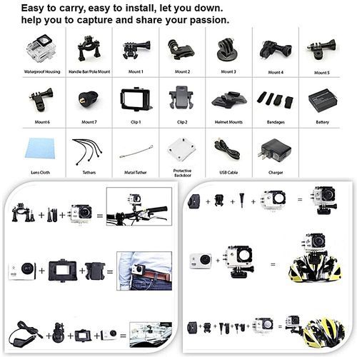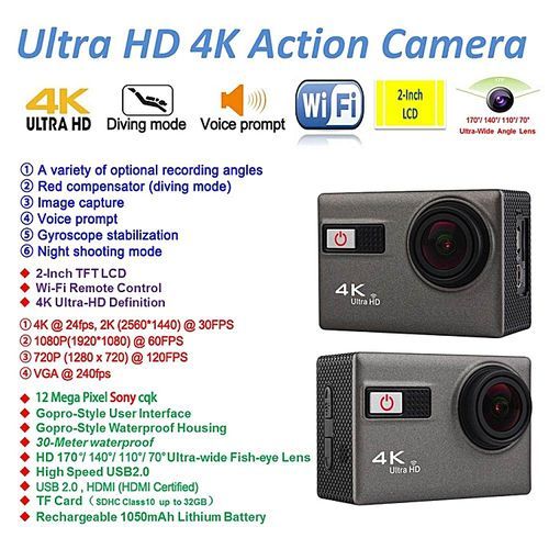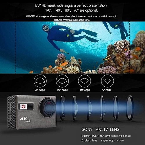 Sports action camera is a professional 4k camera/camcorder for Scuba Diving. Sky Diving. Skiing. Surfing. Jumping and other extreme sports.