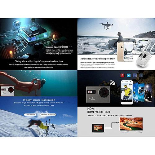WIFI 4K Ultra HD Sport Action Camera 1080P 60fps HDMI 20MP+ 170 Degree Wide Viewing Angle Waterproof DV Camcorder for Outdoor Sports. Silver