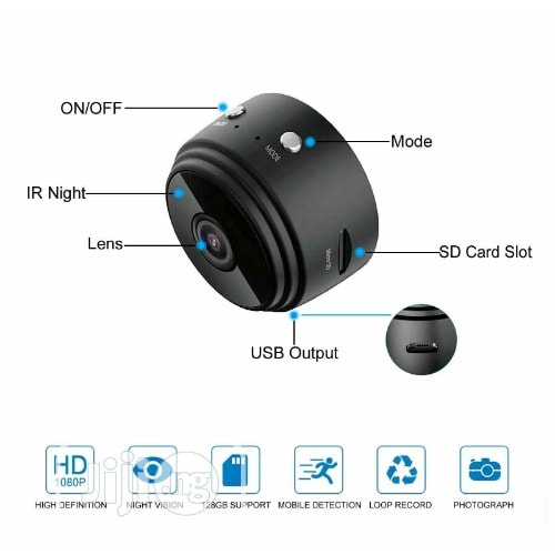 The camera will recording and saves the video files to the sd card (sd card not included). night vision & alarm push, those functions are the basis for this indoor security camera. you can not only see things in the dark. this small camera bathroom has a built-in magnet, can work well with any iron material, easily place anywhere. this small camera with a rigid charging cable and base, when charging while recording, you can manually rotate the recording angle 360 degrees.