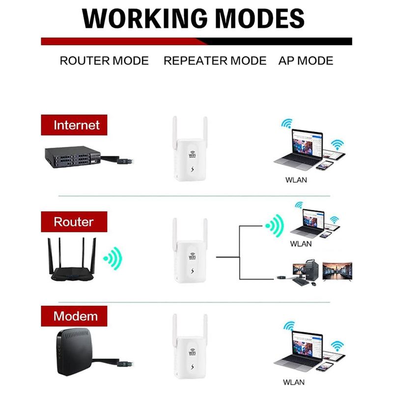 Working Mode & Minimalist Design Use the WPS on to set up and manage your WiFi in a few quick and easy steps AP mode is used to overlay the wired network to the wireless network creating a new WiFi access point to enhance the WiFi capability of your wired network This Wifi booster has a unique minimalist design style to better into your environment without obtrusive and
