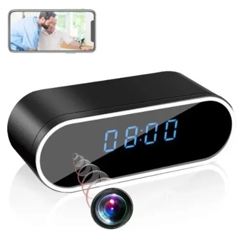 Discreet and Concealed Design: This hidden camera clock was designed having in mind a discreet and user-friendly experience, posing as a functional alarm clock which is small, compact and elegant, a discreet addition to any room of your home or office!Adjustable Recording Modes: Unlike similar products on the market, this hidden camera clock allows various recording modes depending on your needs. Easily set it for loop recording or motion detection and make sure you & rsquo;re constantly informed of the whereabouts of your loved ones!Wide Viewing Angle: With a HD 1080P resolution and crystal-clear image, easy to pair with any smartphone, tablet or laptop through stable WIFI connection, this small camera also enjoys an ultra-wide 140-degree viewing angle, reaching every important corner of your room!Wide Applications: Supporting up to 128GB TF memory card( not included), with state of the art motion detection technology and night vision feature, this secret camera is an excellent choice for improving home security, as a nanny cam, for checking up on your elderly, business partners, life partner or colleagues!Hidden Camera Clock: This mini camera looks like a regular clock which could tell you time. The lens of the mini camera is hidden under the glossy screen thus nobody will notice it.It can be used with wide angle of 140 degree and 1080P lense. Act as a surveillance camera in Office, Home and Car etc. With Romotely mini camera you will never miss any details clearly that & rsquo;s happening in the room.WiFi Streaming and Remotely View:The wireless WiFi camera hidden camera in clock could be connected to the internet network, so you could live-stream your footage from anywhere in the world. Just download the app and follow the instruction book, then you are able to see everything happens on your phone, tablet or computer.Loop Recording: Insert the TF card into its slot, power it on, the camera will start to record automatically. When the memory space is full, the camera will overwrite the files from oldest to newest. Please Noted: No audio record function due to federal lawCleary Night Vision and Motion Detection: hidden cam comes with excellent 5M infrared night vision, you can see any details and surface clearly even in dark environment. And, your phone will receive Notification with images while a motion is detected. Just use the App to see details in real time and neednt to worry about any missing happened.