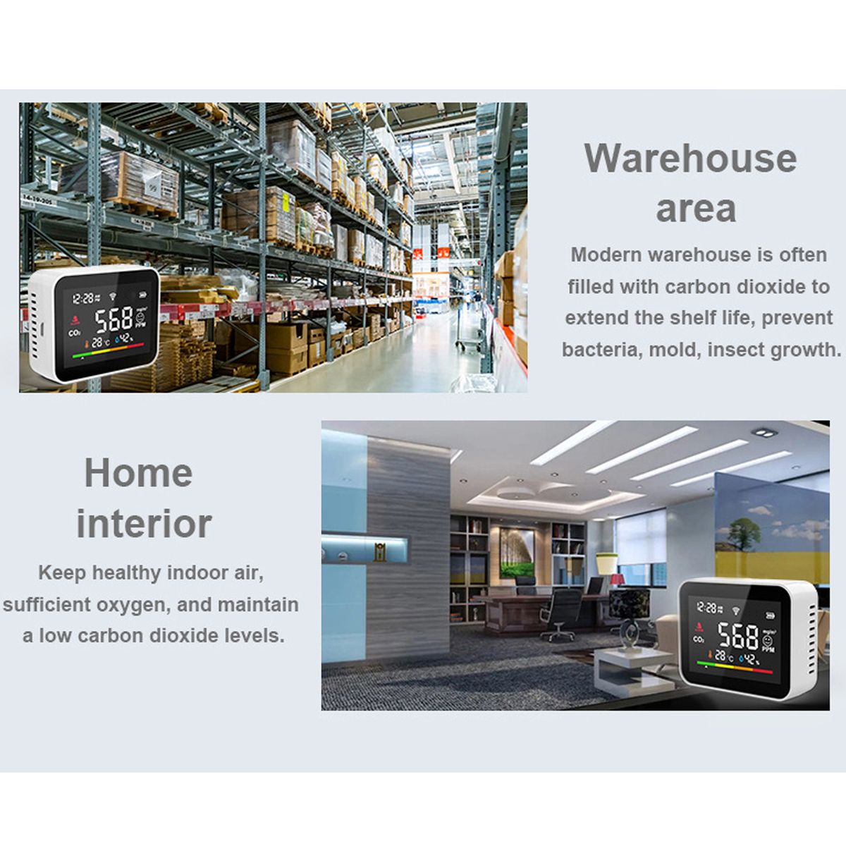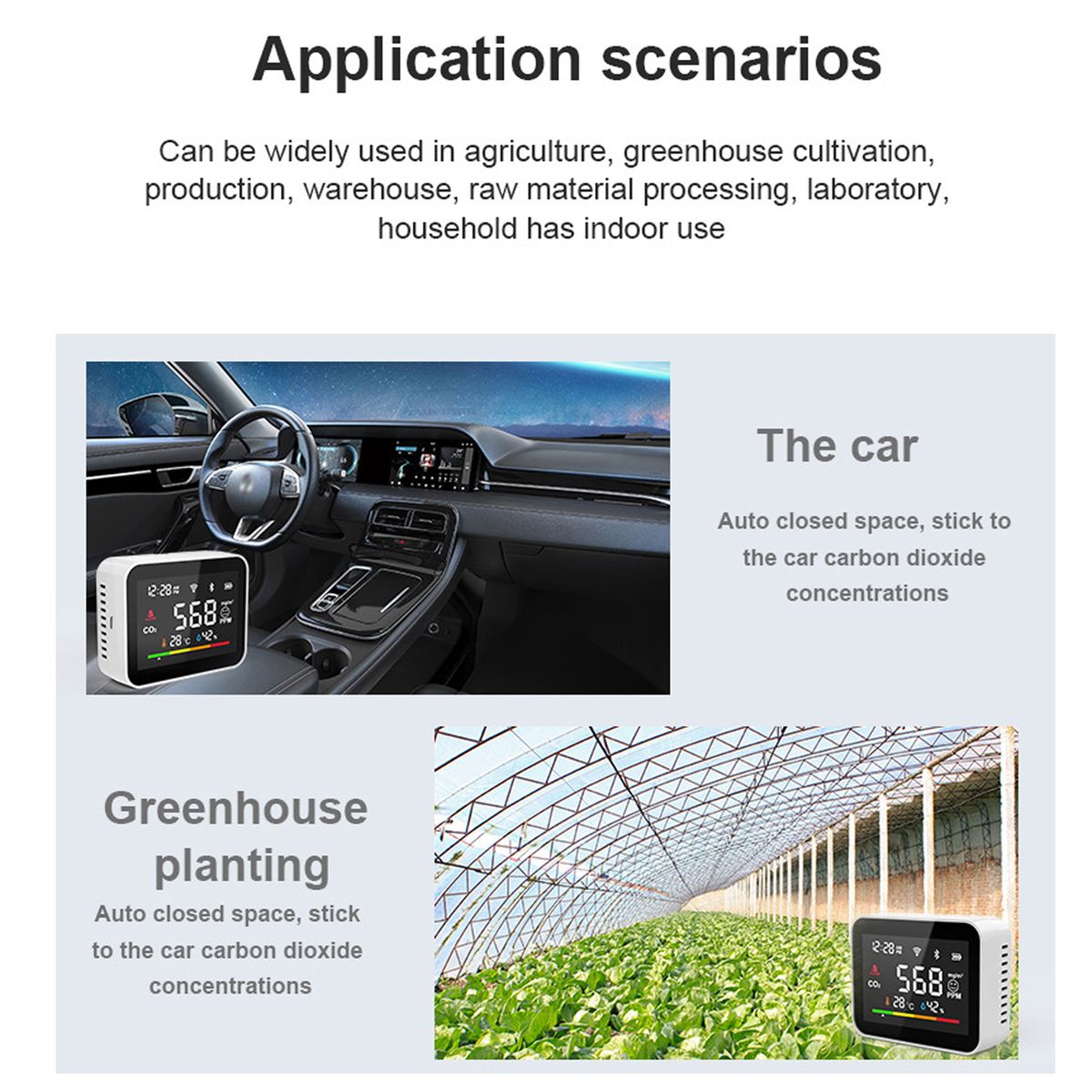 It helps you check the air condition and is a good helper for home inspection, greenhouse planting, warehouse carbon dioxide detection, etc
