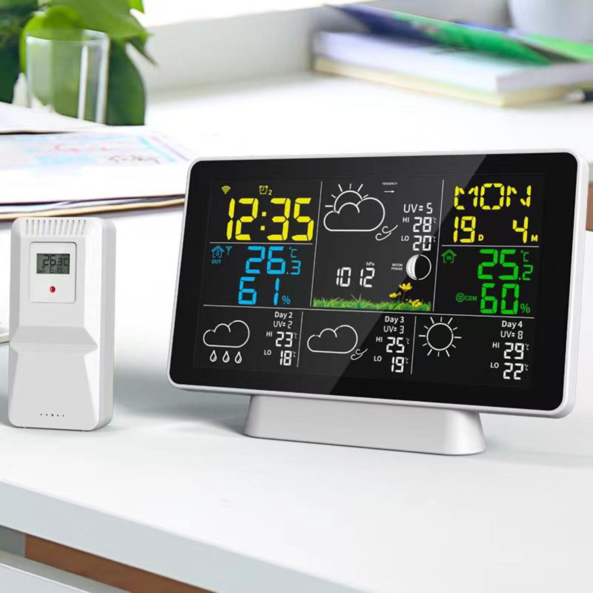 Buy WIFI Weather Station Wireless Indoor Outdoor Hygrometer Thermometer Temperature Humidity Display Monitor Digital Weather Forecast Station Clock Alarm Clock with Outdoor Sensor&Adapter in Nigeria
