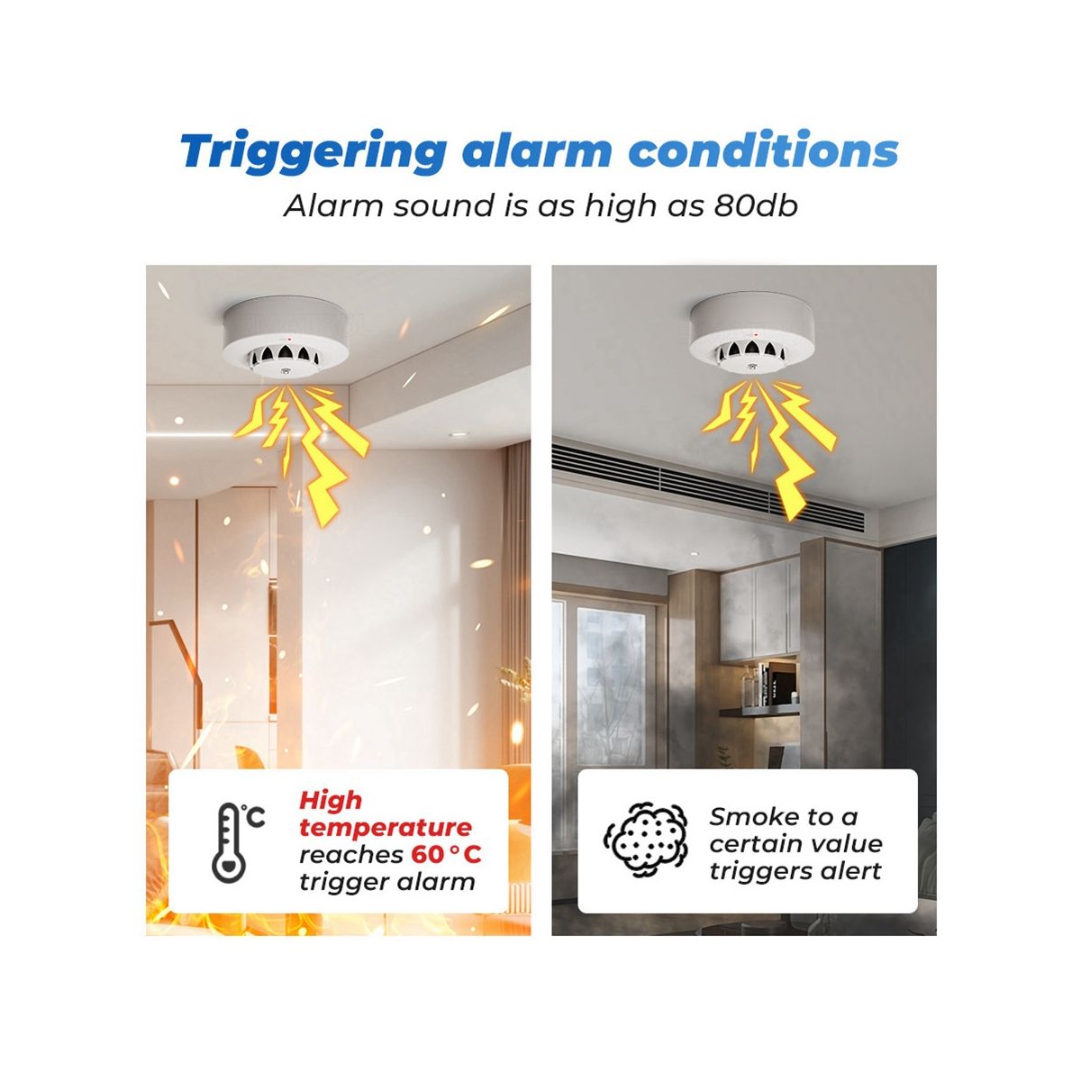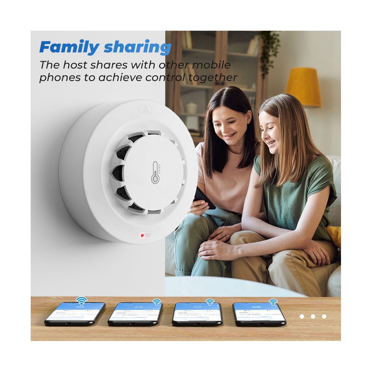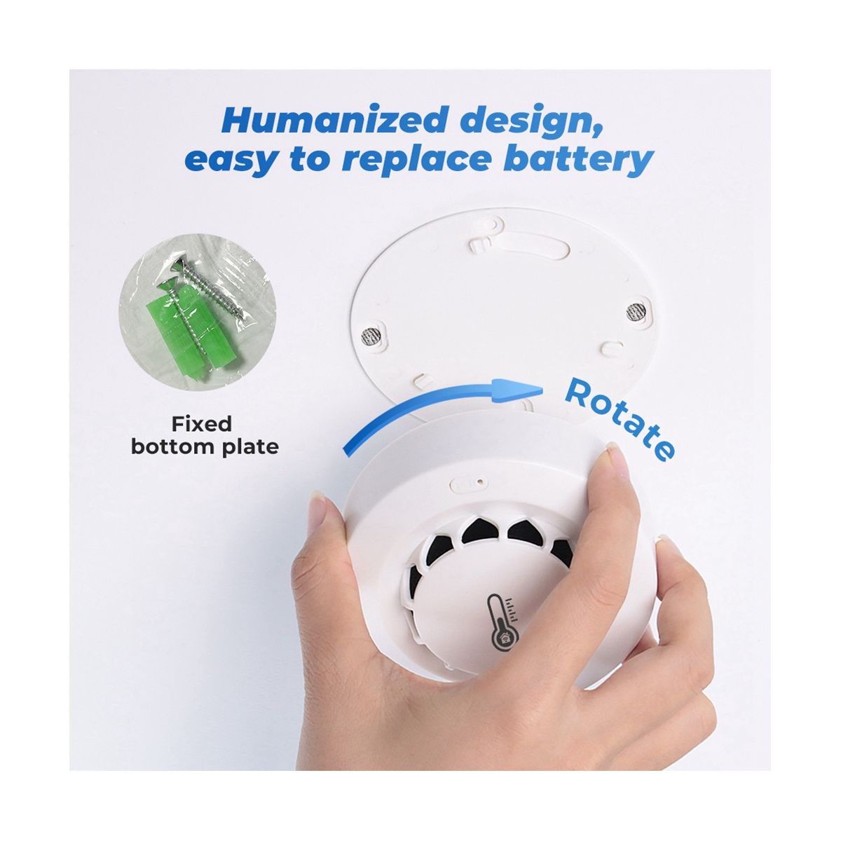 1. 2 in 1: Smoke detector with temperature and humidity sensor, not only can detect smoke, but also measure temperature and humidity. Temperature and humidity curves, record temperature and humidity changes on the APP, and present them to you in graphics. Let you know the latest data changes more intuitively.