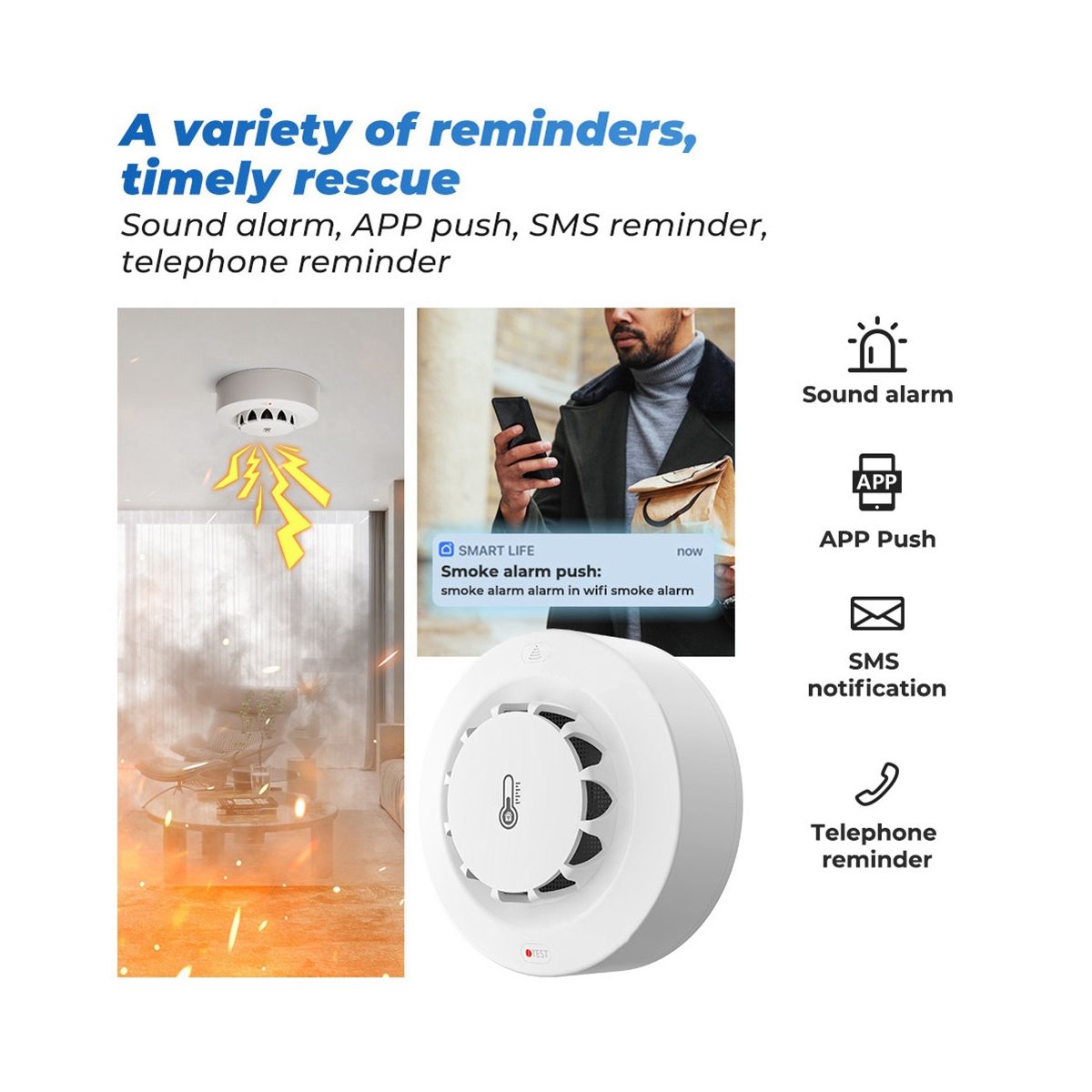 3. Features: The smoke detector reminds the dangerous smoke concentration in time, getting rid of potential danger and economic loss. WIFI Bluetooth - Compatible with 2 connection methods, can connect to the network faster. Connecting to a network is 2x faster than using only Wifi.