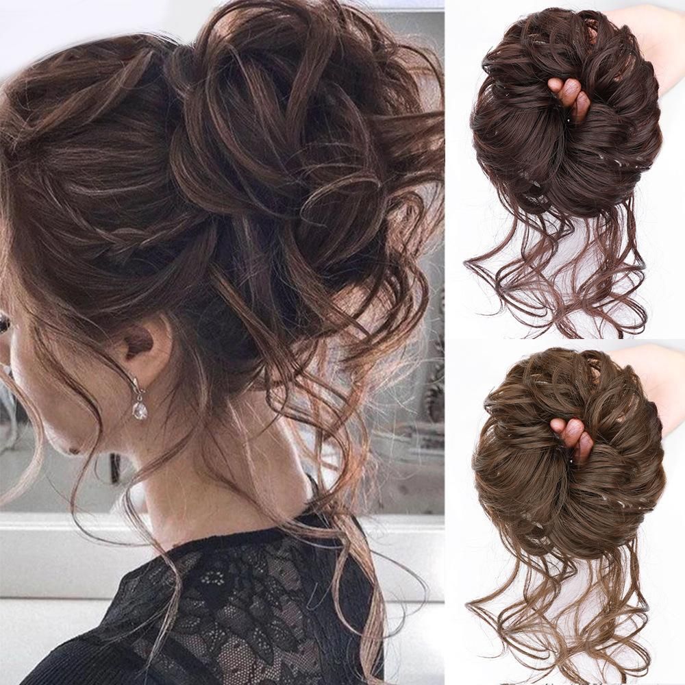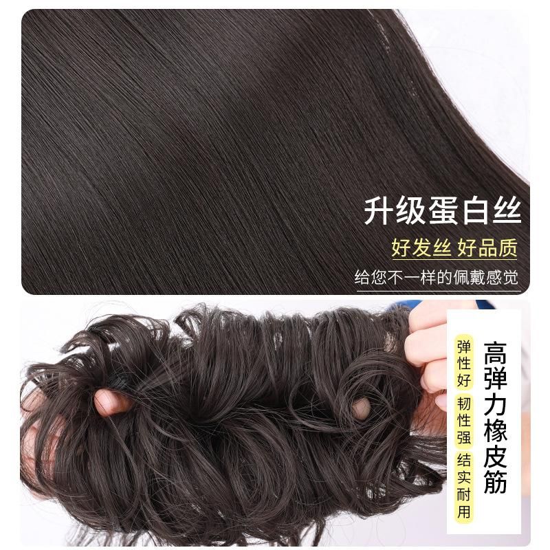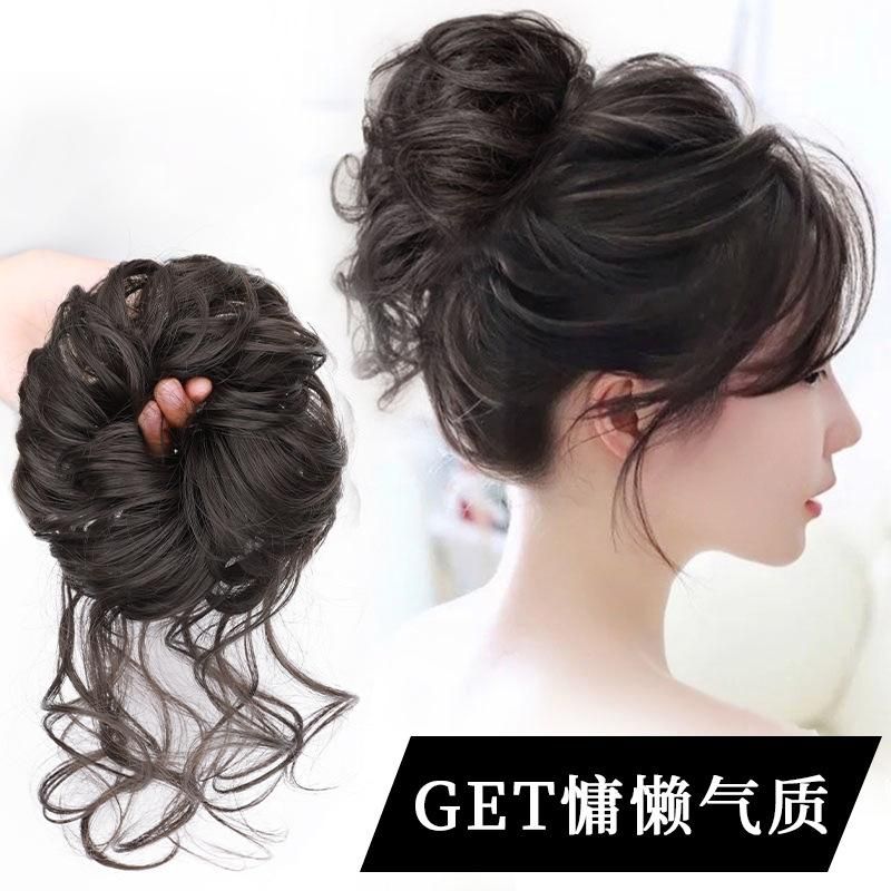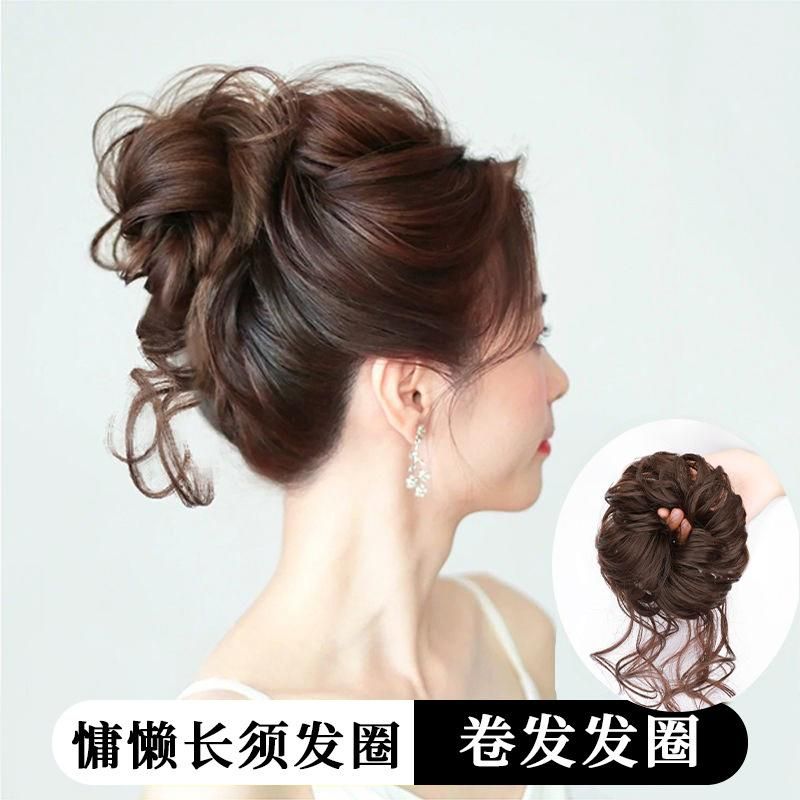 Buy Wig meatball head female summer lazy long beard dragon beard hair circle fluffy hair bag back head real hair cocktail hair circle headdress Real hair dragon beard and hair band - light brown in Nigeria