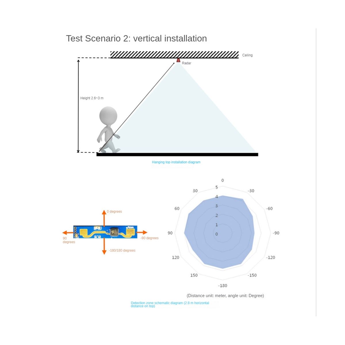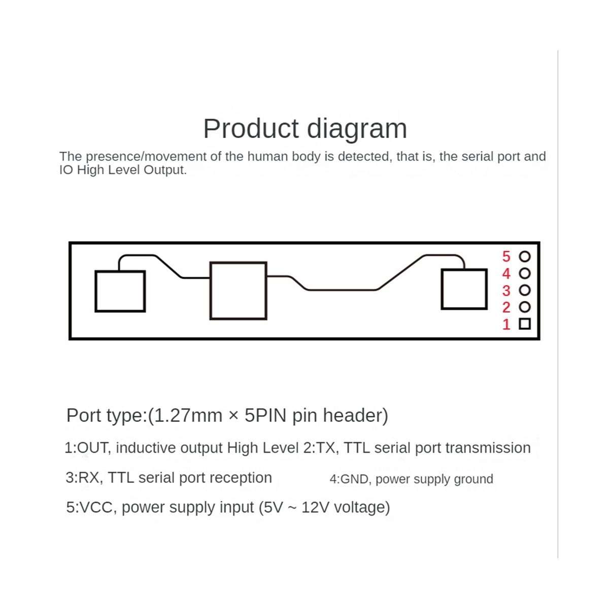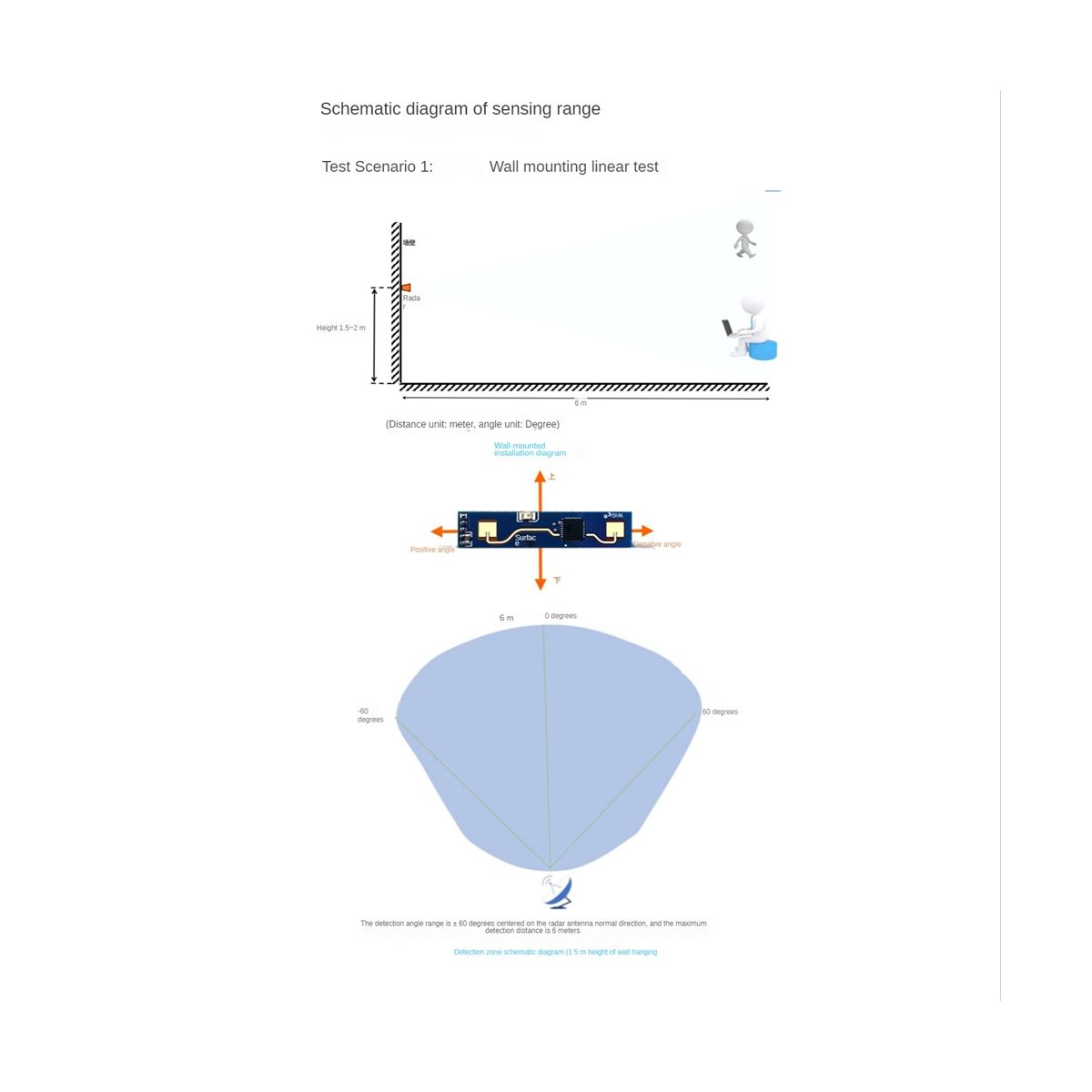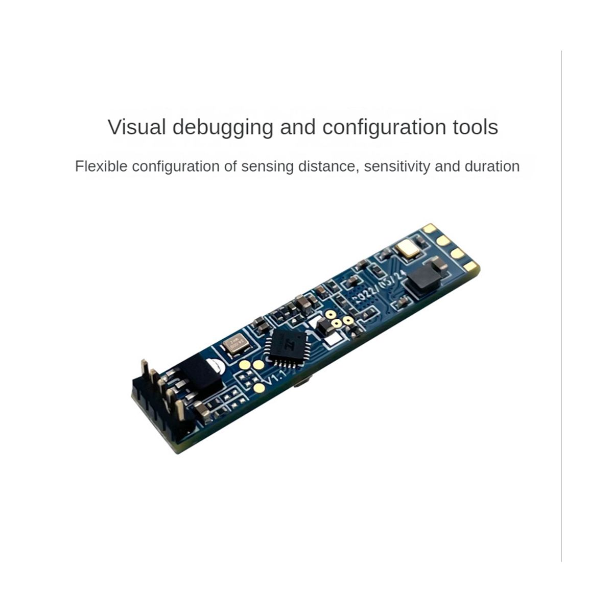 This product is mainly used in indoor scenes to sense whether there is a moving or micro-moving human body in the area, and output the detection results in real time. The farthest sensing distance can reach 5 meters, and the distance resolution is 0.75m. Provides a visual configuration tool, which can easily configure the sensing distance range, sensing sensitivity in different intervals, and unmanned delay time, etc., to adapt to different specific application needs.