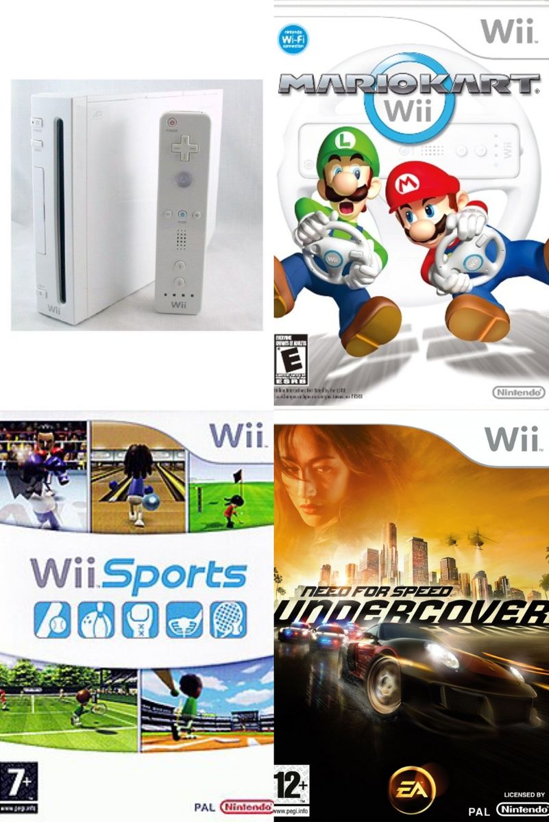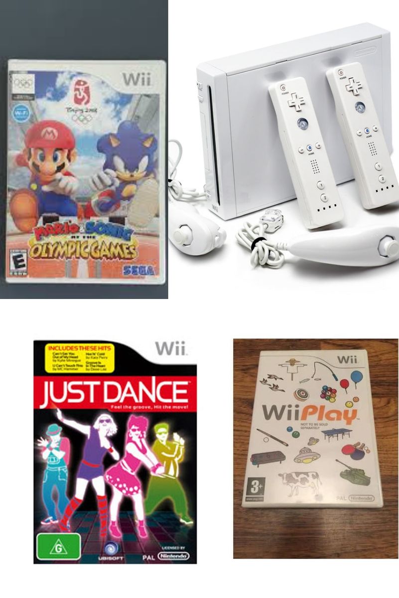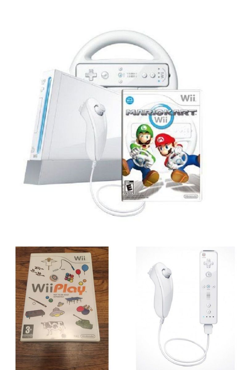 Console, Remote, Nunchuck, AV cable, Sensor bar, Power Adapter, 3 Wii Game CD