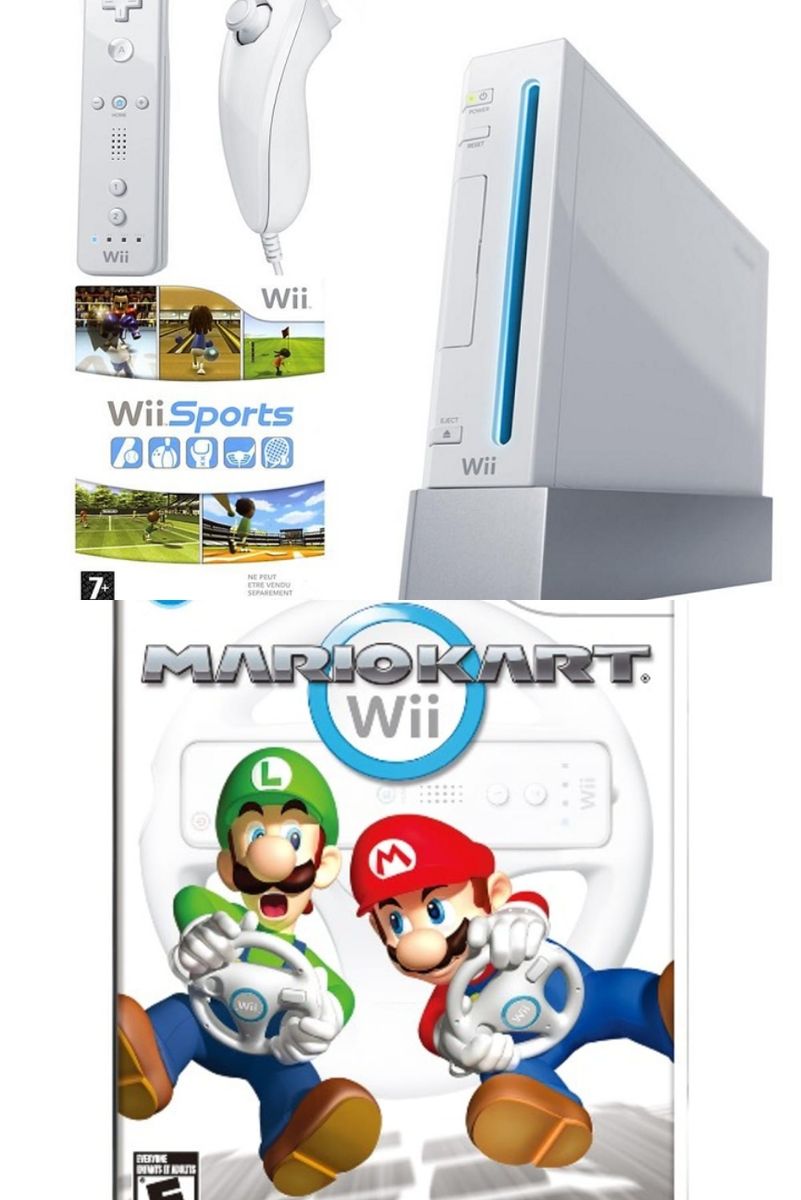 The Wii includes the Nintendo Wii System, Nintendo Wii Remote, Nintendo Wii Nunchuck, AC Cable, Standard AV Adapter, Sensor Bar and 3 Wii games