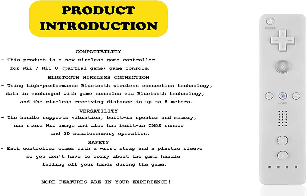 - Excellent Compatibility: This controller is a third-party product, not produced by Nintendo. It is a game controller with excellent sensitivity and accuracy, and the new wireless gaming controller that is compatible with Nintendo Wii console. It is suitable for Wii games and also supports for mostly Wii U games.