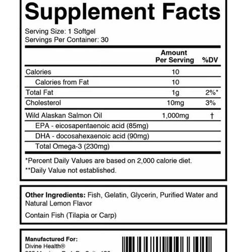 Dr. Colbert's Wild Alaskan Salmon Omega-3 is made from salmon found in the clean waters of the North Pacific, which contains some of the highest levels of Omega-3 fatty acids of all cold water fish. Divine Health's proprietary extraction method shields the oil from damaging high heat. The result is a pure and balanced fish oil that delivers all the essential fatty acids, along with Vitamins A, D, E, and the antioxidant Astaxanthin; all naturally found in Alaskan salmon!