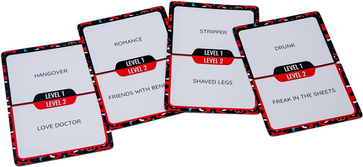 charades game for naughty people. Perfect for games night and adult hang-outs. Wild Charades is an adult-only party game where players take turns acting out or verbally describing Words/Phrases, while their teammates try to guess as many answers as possible in one minute. Using your phone to time one round, go through as many cards as possible starting with level I before moving on to level 2. The team with the higher number of correct answers after everyone has a turn wins the round. The game comes with 100 cards each with 2 words to describe. Level 1 (easy) and level 2 (intermediate). Players should complete level 1 before moving on to level 2. Wild Charades is an adult-only party game where players take turns acting out or verbally describing Words/Phrases, while their teammates try to guess as many answers as possible in one minute. Using your phone to time one round, go through as many cards as possible starting with level I before moving on to level 2. The team with the higher number of correct answers after everyone has a turn wins the round. The game comes with 100 cards each with 2 words to describe. Level 1 (easy) and level 2 (intermediate). Players should complete level 1 before moving on to level 2. Wild Charades is an adult-only party game where players take turns acting out or verbally describing Words/Phrases, while their teammates try to guess as many answers as possible in one minute. Using your phone to time one round, go through as many cards as possible starting with level I before moving on to level 2. The team with the higher number of correct answers after everyone has a turn wins the round. The game comes with 100 cards each with 2 words to describe. Level 1 (easy) and level 2 (intermediate). Players should complete level 1 before moving on to level 2.