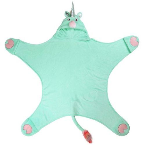 Wearable costume blankets this sweet don't come along often. Snatch up this magical kids blanket for your unicorn-lover and there's sure to be plenty of enchantment! Kids can dream in comfort snuggled inside our hooded Stardust Unicorn blanket with pocketed hooves and stunning details like a sparkly horn and heart embellishment, plus a rainbow-colored mane and tail! It's the cutest of the cute when it comes to wearable animal blankets!