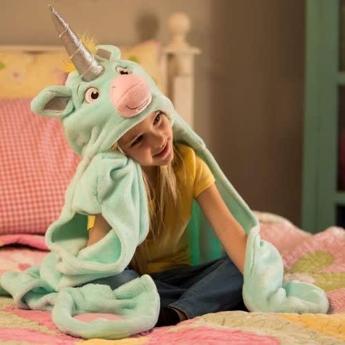 Wearable costume blankets this sweet don & rsquo;t come along often. Snatch up this magical kids blanket for your unicorn-lover and there & rsquo;s sure to be plenty of enchantment! Kids can dream in comfort snuggled inside our hooded Stardust Unicorn blanket with pocketed hooves and stunning details like a sparkly horn and heart embellishment, plus a rainbow-colored mane and tail! It & rsquo;s the cutest of the cute when it comes to wearable animal blankets!